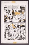 The Cataclysm/No Man's Land saga that took over all of the Bat-books for a year was a (literally) groundbreaking story that had deep consequences for Gotham and its cast of misfits. Early on, in the 'Aftershock' phase, we see Batman doing his best to patrol his broken city (dig that cape action, pure Willingham!) and coming upon a group of tech-savvy looters. Pencil, ink, and screentone on DC Comics art board. 11" x 17", B&W. Also included is a copy of the original issue.