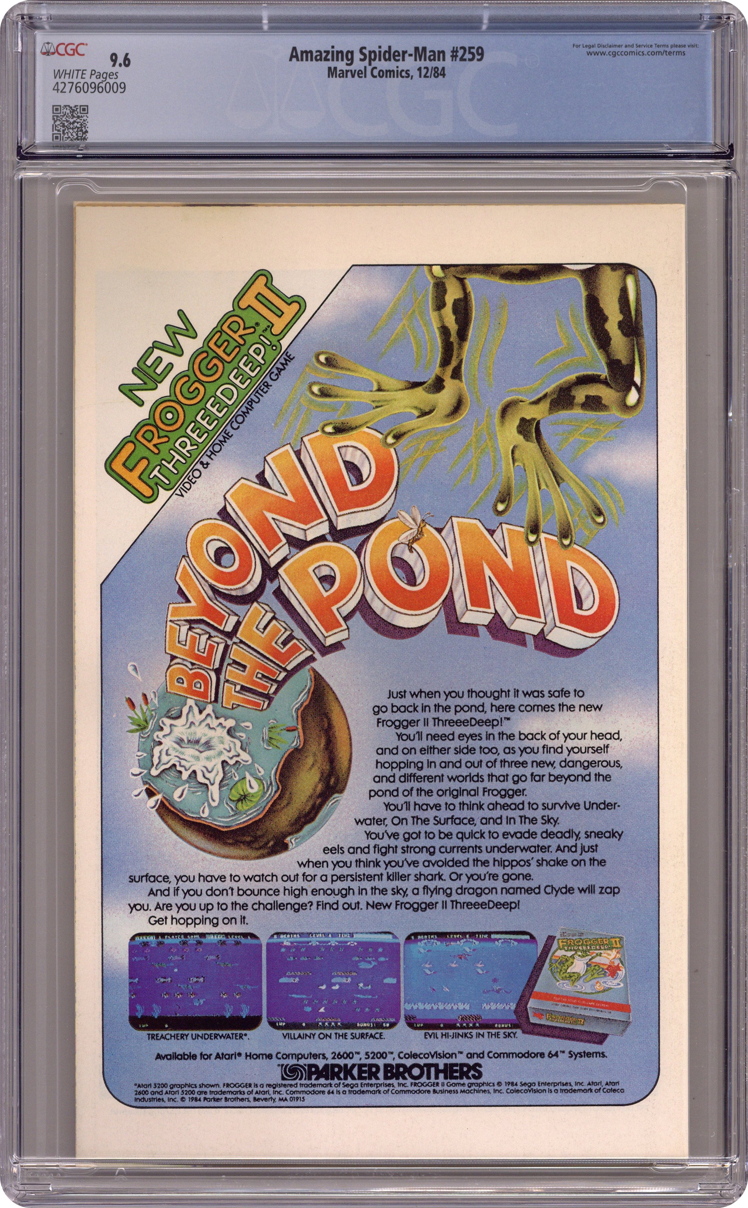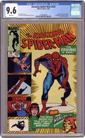Direct Edition. "All My Pasts Remembered!" Script by Tom DeFalco. Pencils by Ron Frenz. Inks by Joe Rubinstein. Cover by Ron Frenz and Joe Rubinstein. After Mary Jane's bombshell revelation to Peter two issues ago, the pair of long-time friends takes a walk together through Central Park. MJ shares her family history with Peter...to make him comfortable with her knowing his secret identity. Where will their relationship go from here? Meanwhile, the Hobgoblin is back in business! And attempting to cut into the Kingpin's action (with help from his new ally: the Rose)! Origin of Mary Jane Watson. Cameo appearances by Mr. Fantastic, She-Hulk, and the alien symbiote. Flashback cameos by Aunt May and Anna Watson. (Notes. The Amazing Spider-Man returns to his original red and blue costume. This issue was reprinted in Marvel Tales 273.) 36 pgs. Cover price $0.60. Grade: CGC 9.6 explanation of grade Condition: Used (collectible)