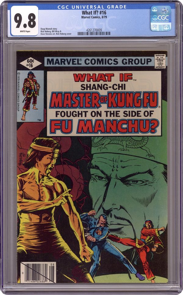 Ended Oct 27 2023 Winning Bid $135 Direct Edition. "What If Shang-Chi, Master of Kung Fu, Had Remained Loyal to Fu Manchu?" Script by Doug Moench, pencils by Rick Hoberg, inks by Bill Wray and Dave Stevens. Hoberg cover. 52 pgs. Cover price $0.60. Grade: CGC 9.8 explanation of grade Condition: Used (collectible)