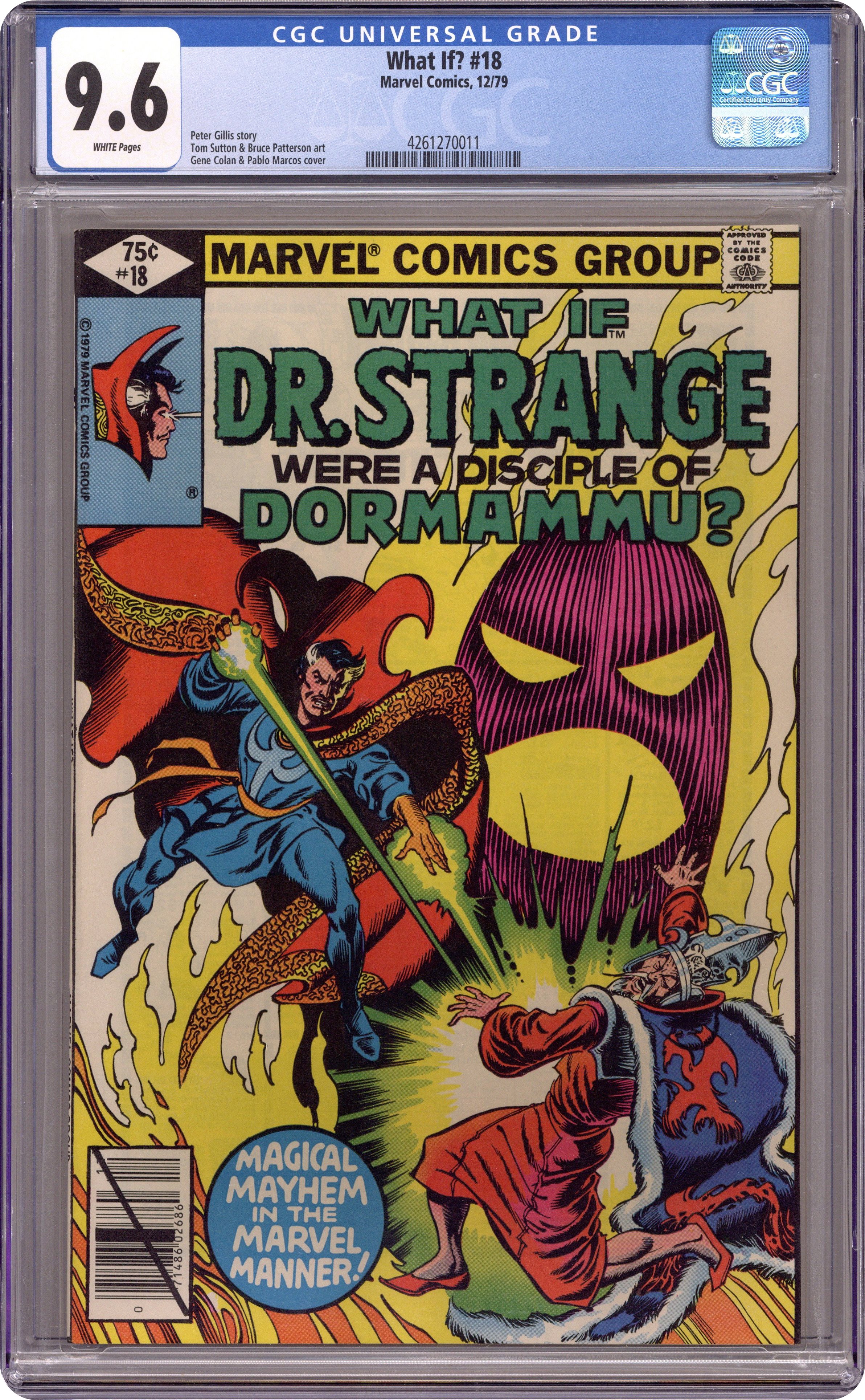 Ended Oct 12 2023 Winning Bid $51 Direct Edition. Story by Peter Gillis. Art by Tom Sutton and Bruce Patterson. Cover by Gene Colan and Pablo Marcus. "What If Dr. Strange Had Been a Disciple of Dormammu?" Uatu the Watcher reminds the reader that events can always take a different path: that a distinction as apparently obvious as good and evil may be very slight indeed; Doctor Strange, as established in the main universe, was an arrogant surgeon who cared more for his patients' money than their health; When his ability to operate was robbed from him due to injuries in a car accident, he sought out the Ancient One, who refused to hand him the easy cure he was hoping for; Instead, he let Strange stay at the retreat and witness Baron Mordo's treachery, thus realizing that greater forces were in the world than his own selfish ambitions, and setting his foot on the path that would lead him to becoming Master of the Mystic Arts. "Spider-Man Meets June Jitsui!" ad for Hostess snack cakes. 52 pgs. Cover price $0.75. Grade: CGC 9.6 explanation of grade Condition: Used (collectible)