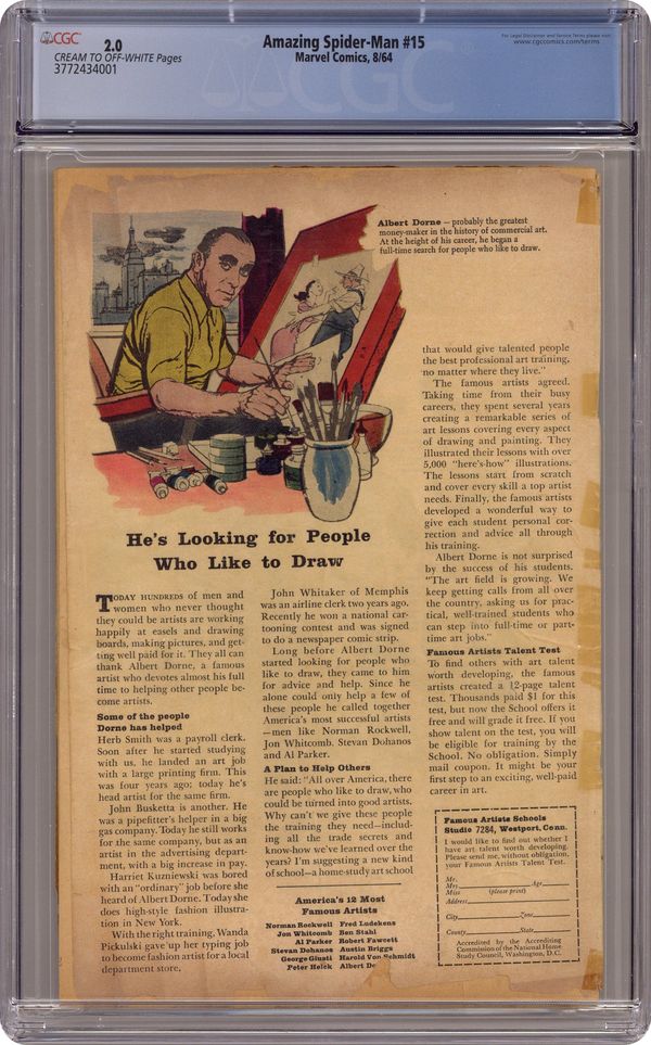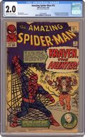 Cover art by Steve Ditko. First appearance of Kraven the Hunter in Kraven the Hunter!, script by Stan Lee, art by Steve Ditko; The Chameleon hires his old friend Kraven the Hunter to hunt down Spider-Man. Reprinted in Marvel Tales # 10 and 153. 36 pgs. $0.12. Cover price $0.12. Grade: CGC 2.0 explanation of grade Condition: Used (collectible)