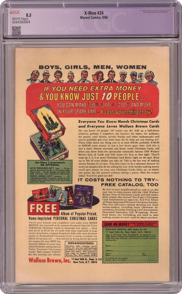 Ended Oct 14 2023 Winning Bid $96 Cover pencils by Werner Roth, inks by Dick Ayers. The Plague of ... The Locust! starring Professor X, Cyclops, Marvel Girl, Angel, Beast, Iceman, Ted Roberts, and The Locust [August Hopper], script by Roy Thomas, pencils by Werner Roth, inks by Dick Ayers; August The Locust Hopper wants to unleash a plague of locusts on the world. Letter to the editor from comic inker D. Bruce Berry. 36 pgs. $0.12. Cover price $0.12. Grade: CGC 8.5 explanation of grade Condition: Used (collectible)