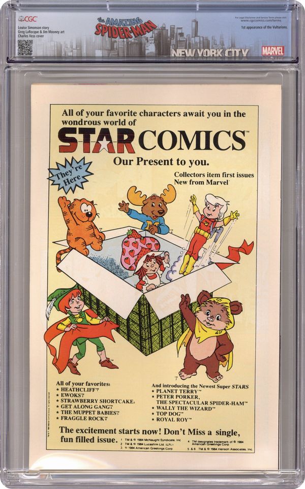 Ended Oct 19 2023 Winning Bid $161 Direct Edition. "Til Death Do Us Part!" Story by Louise Simonson. Art by Greg LaRocque and Jim Mooney. Painted cover by Charles Vess. The alien symbiote (aka black costume) ambushes Peter Parker while he is getting dressed. Now Spider-Man must battle the black costume and the new Vulturions on his way to the Baxter Building! Meanwhile, Aunt May laments Peter's decision to drop out of graduate school. (Note: The Web of Spiderman series essentially replaced the Marvel Team-Up title as Marvel's third regular series featuring Spider-Man.) 32 pages Cover price $0.65. Grade: CGC 9.8 explanation of grade Condition: Used (collectible)