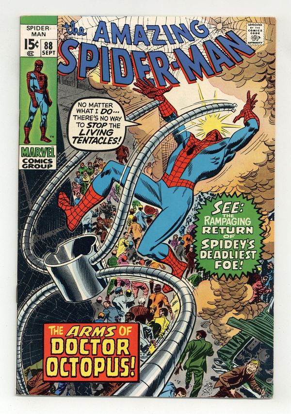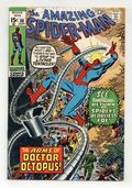 "The Arms of Doctor Octopus!" Part 1 of 3. Script by Stan Lee. Pencils by John Romita. Inks by Jim Mooney. Cover by John Romita. The mechanical arms of Dr. Octopus are on display in the New York Museum of Natural Science! And since Doc Ock is in prison a thousand miles away, he is unable to mentally control his arms. Or so everyone thought. Oh no! When Otto Octavius' arms escape from the museum, the police and the wall-crawler attempt to corral them, but they cannot. Eventually, the arms make it allthe way to the Midwest...and free their master! Dr. Octopus is back in business! The six-armed super-villain swiftly resumes his criminal ways by hijacking an airplane and holding it for ransom! And thus setting up a battle on the tarmac vs. your friendly neighborhood Spider-Man! Cameoappearances by Gwen Stacy, Professor Miles Warren, J. Jonah Jameson, John Jameson, Betty Brant, Joe Robertson, and Captain Stacy. (Notes: The web-slinger previously clashed with Doc Ock in Amazing Spider-Man #56. This issue was reprinted in Marvel Tales #69.) 36 pages. Cover price $0.15. Grade: FN/VF 7.0 explanation of grade Condition: Used (collectible)