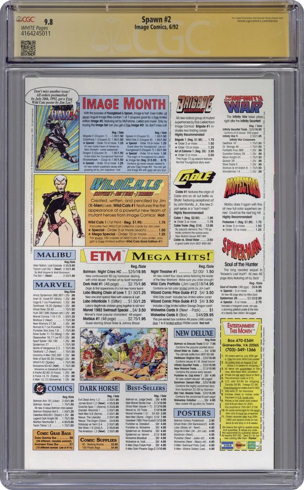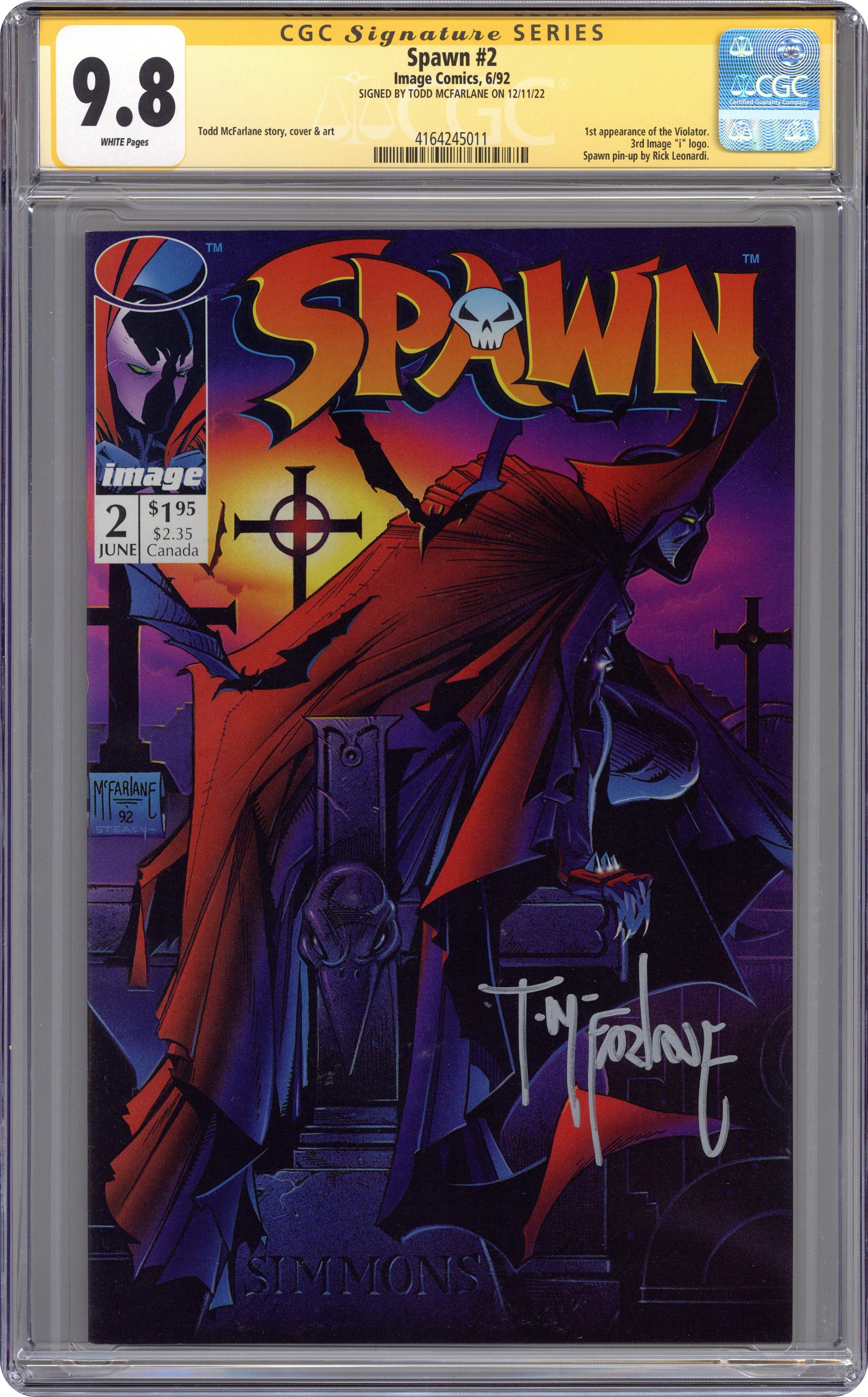 Direct Edition (has no bar code on cover) - "Questions!" Part 2 of 4. 1st appearance of the Violator. Created, story, and art by Todd McFarlane (1 page Rick Leonardi art). Meet the Violator, a diminutive little clown who hides a dangerous and deadly secret. Meanwhile, a sinister creature is committing horrible acts of violence on the criminal underworld of New York City, and Spawn will take the blame for it. Cover price $1.95. Grade: CGC 9.8 explanation of grade Condition: Used (collectible)