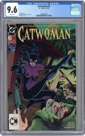 Catwoman gets sidetracked from her mission in Santa Prisca, fighting crime by night and playing with the rich and shameless by day, in "Life Lines Chapter 3: Shadow Of The Cat!" Part 3 of 4, continued from the previous issue. Story continues next issue. Script by Jo Duffy, pencils by Jim Balent, inks by Dick Giordano. Balent cover. Cover price $1.50. Grade: CGC 9.6 explanation of grade Condition: Used (collectible)