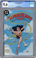 The Amazons make a decision about opening Themyscira's gates to the outside world, and Diana rushes to Boston to tell Julia and Vanessa in "Through Destiny's Door". Script and pencils by George Perez, finishes by Bob McLeod. Some story elements continue into Wonder Woman (1987-) Annual #1. Perez cover. 36 pgs. Cover price $1.00. Grade: CGC 9.6 explanation of grade Condition: Used (collectible)
