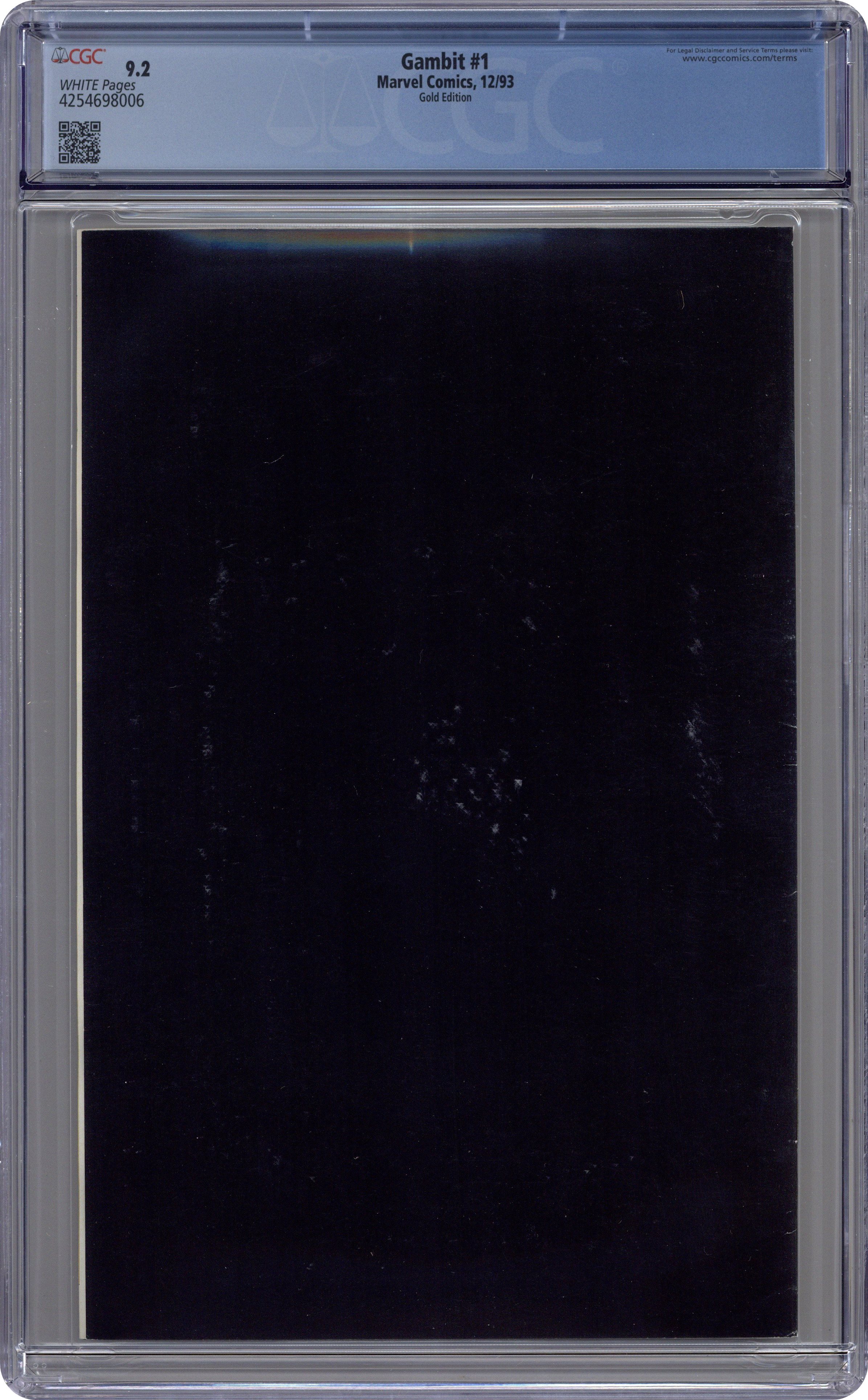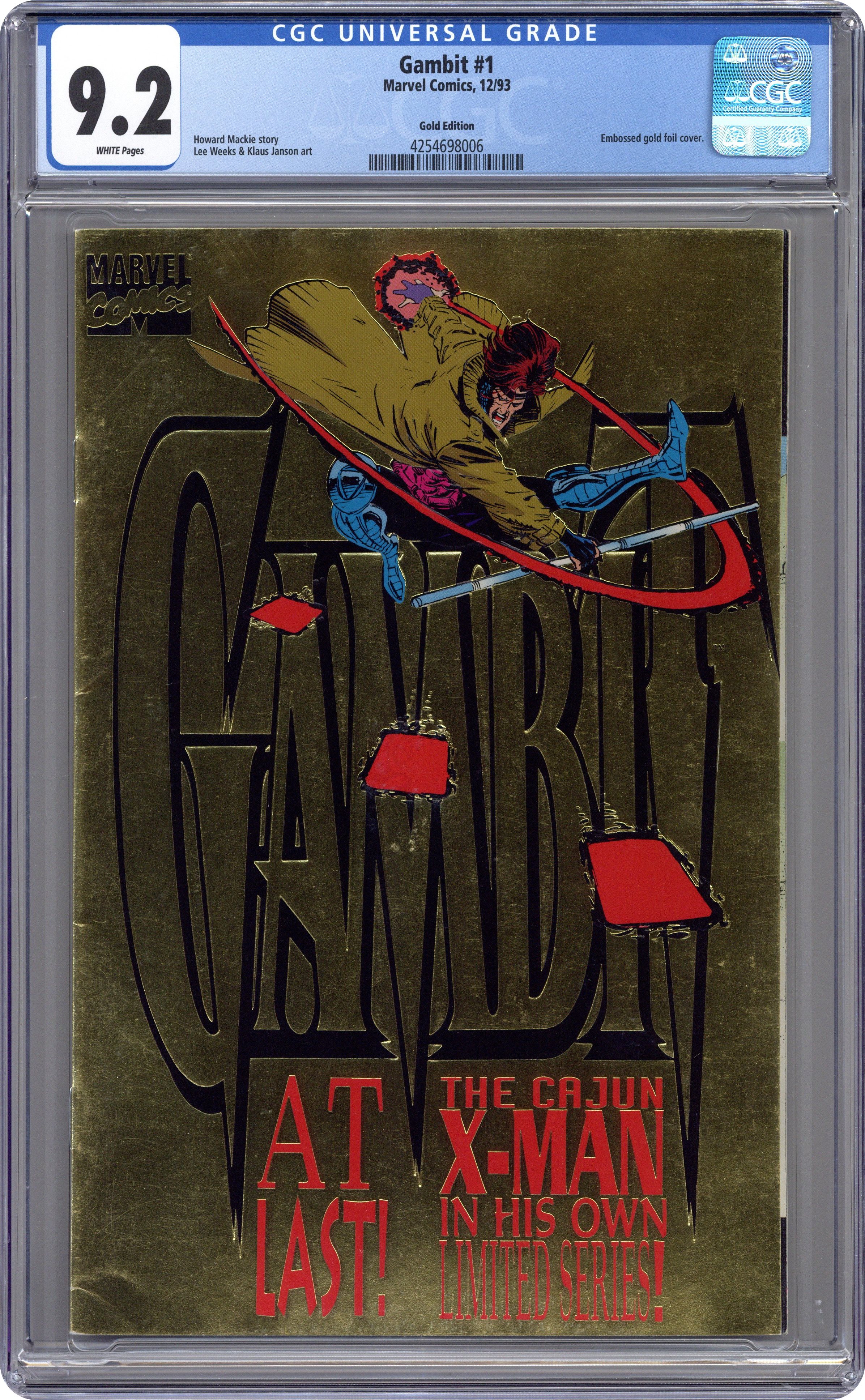Gold edition. Tithing, script by Howard Mackie, pencils by Lee Weeks, inks by Klaus Janson; Henri LeBeau sneaks into X-Mansion and tells his young step-brother, Gambit, that the time of the tithing has come and he is needed in New Orleans as the Assassins Guild is trying to break the old pacts; As they are speaking, Henri is cut down by an assassins arrow; Gambit gives chase and discovers that the killer is Julien, the "dead" brother of his wife; Learning that Bella Donna is also alive (she was "killed" in X-Men (Marvel, 1991 series) #8) Gambit and Rogue prepare to leave for New Orleans. 36 pgs., full color. Grade: CGC 9.2 explanation of grade Condition: Used (collectible)