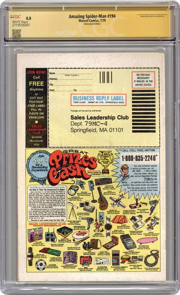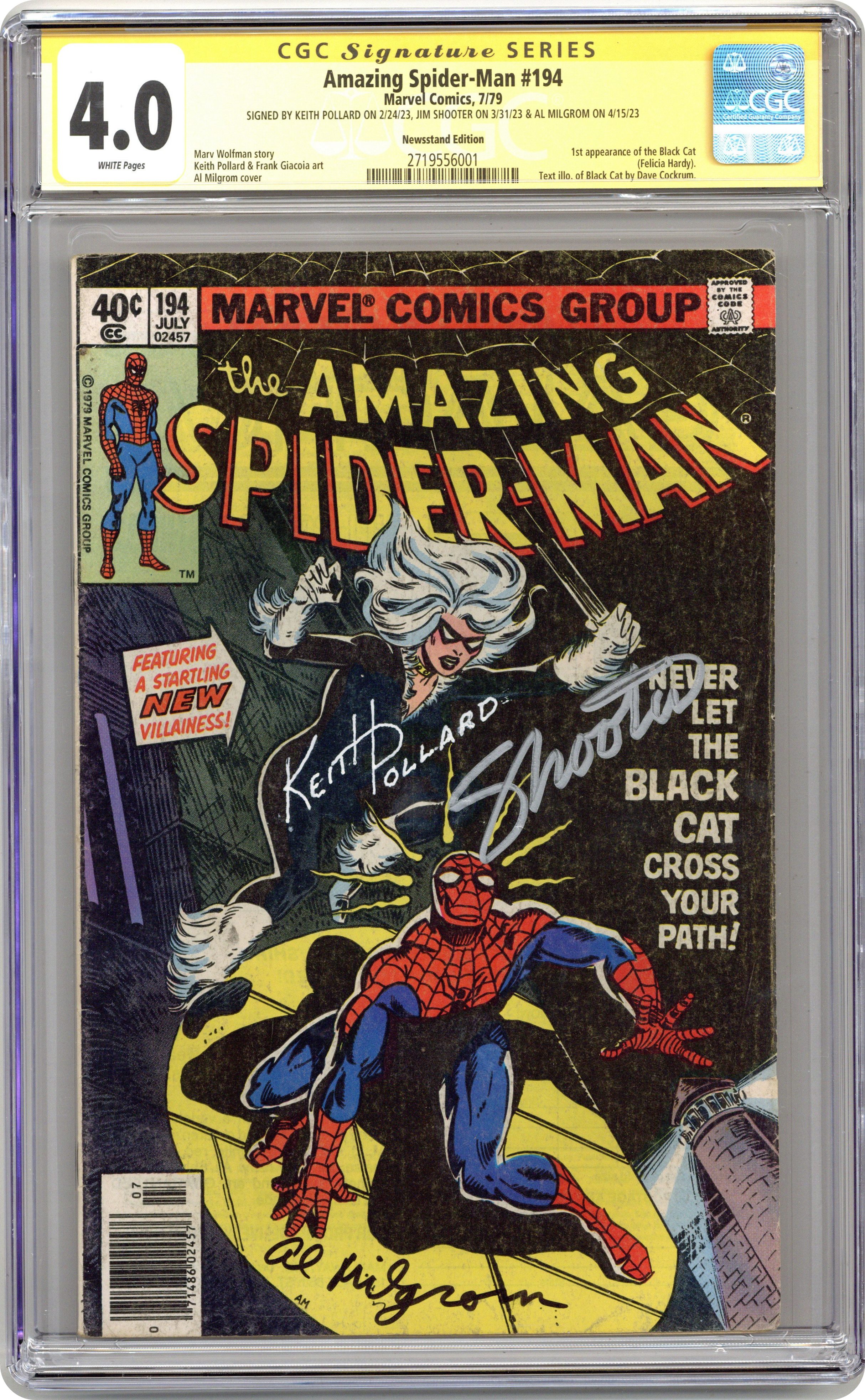 Amazing Spider-Man (1963 1st Series) 194N CGC 4.0 SS Polland/ Shooter/ Milgrom Newsstand Variant