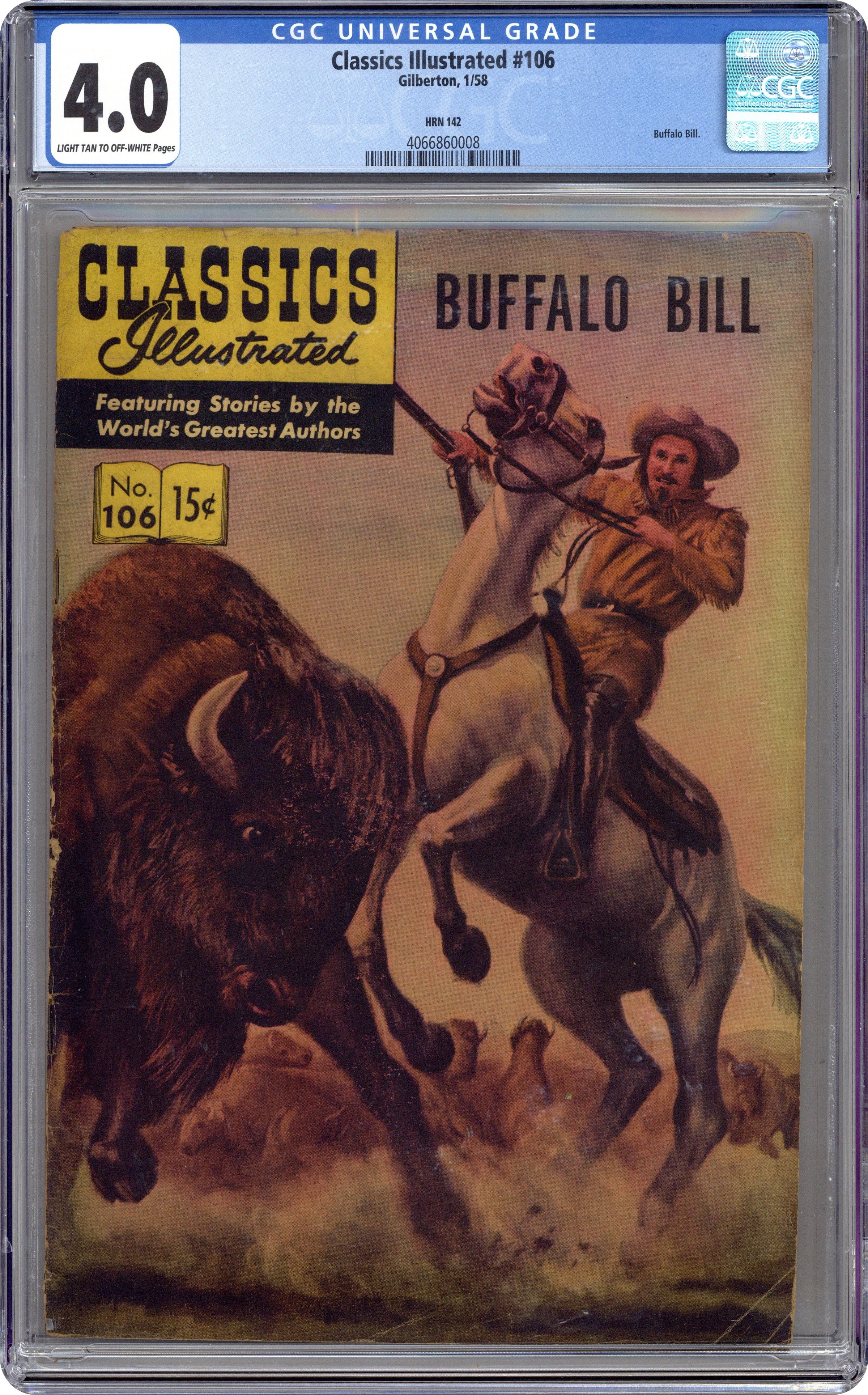 Published Jan 1958 by Classics Illustrated.Classics Illustrated 106 Buffalo Bill (1953) 4B CGC 4.0