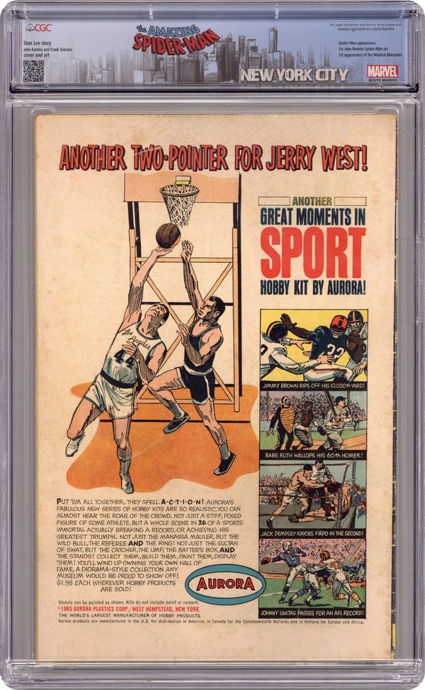 Ended Oct 11 2023 Winning Bid $89 Cover pencils by John Romita, inks by Frank Giacoia. Spider-Man guest stars in Enter Spider-Man!, script by Stan Lee, pencils by John Romita Sr., inks by Frank Giacoia (as "Frank Ray"); The Masked Marauder comes up with a plan to pit Spidey and DD against each other while he makes off with an experimental engine; First appearance of the Masked Marauder. Letter to the editor from comics retailer Bud Plant. 36 pgs. 36 pgs. Cover price $0.12. Cover price $0.12. Grade: CGC 3.5 explanation of grade Condition: Used (collectible)
