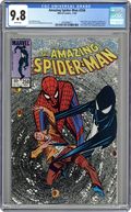 Ended Jan 23 2024 Winning Bid $216 Direct Edition. "The Sinister Secret of Spider-Man's New Costume!" Guest-starring Mr. Fantastic and the Human Torch. Script by Tom DeFalco. Pencils by Ron Frenz. Inks by Joe Rubinstein. Cover by Ron Frenz and Joe Rubinstein. Chaos erupts at 410 Chelsea when Mary Jane Watson and the Black Cat meet inside Peter Parker's apartment! Wow, what a shocking development! To say that the web-slinger has some explaining to do...would be the understatement of the year! After the dust settles, the wall-crawler swings over to the Baxter Building to let Reed Richards analyze his new black costume. When Spider-Man learns his costume is "alive," he tries to pull it off; but the alien symbiote has other ideas! Can the Fantastic Four help Spidey with his major wardrobe malfunction? Cameo appearances by the Rose, Hobgoblin, and Puma. (Notes: The Black Cat and Mary Jane Watson are formally introduced to one another in Spectacular Spider-Man 123. The cover does not display the typical UPC box in the lower left-hand corner. This issue was reprinted in Marvel Tales 272.) 36 pages. Cover price $0.60. Grade: CGC 9.8 explanation of grade Condition: Used (collectible)