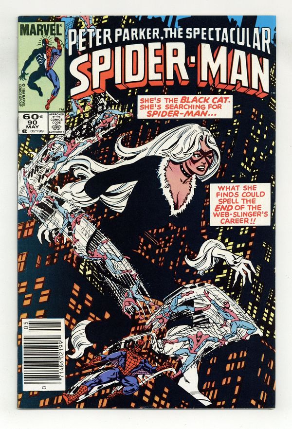Ended Jan 2 2024 Winning Bid $27 Direct Edition. "Where, Oh Where Has My Spider-Man Gone?" Script and Pencils by Al Milgrom. Inks by Jim Mooney. Cover by Al Milgrom. The Spectacular Spider-Man is missing! Where is he? The Black Cat is looking everywhere! She checks with everyone including Mrs. Muggins, Captain DeWolff, J. Jonah Jameson, Aunt May, and the Avengers! When the web-slinger finally reappears on the final page, he's wearing his new black costume! Cameo appearances by the Vision and the Scarlet Witch. (Notes: Spider-Man's new costume debuted this month in Amazing Spider-Man 252, Marvel Team-Up 141, and this issue. The letters page includes a statement of ownership: average print run 351,448; average paid circulation 172,290.) 32 pages Cover price $0.60. Grade: VF- 7.5 explanation of grade Condition: Used (collectible)