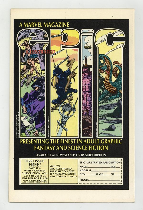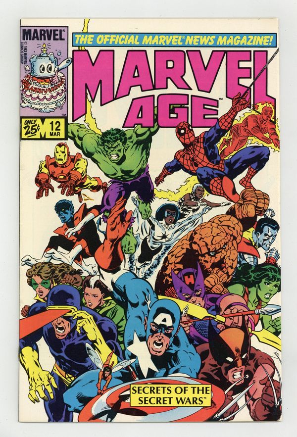 It's the big Marvel Super Heroes Secret Wars Issue! Get a preview on all the stuff from the historic series! PLUS! See Spider-man's black costume sketches in a comic that came out 2 MONTHS BEFORE Amazing Spider-Man # 252 (and Marvel Team-Up # 141 & Spectacular Spider-Man # 90. Secret Wars # 8 came out 7 months later). Article on Secret Wars, with designs of Spider-Man's new costume; Associate Editor Jo Duffy discusses Heartburst; writer Jim Salicrup discusses The A -Team; Secret Wars. Cover by Mike Zeck and John Beatty.