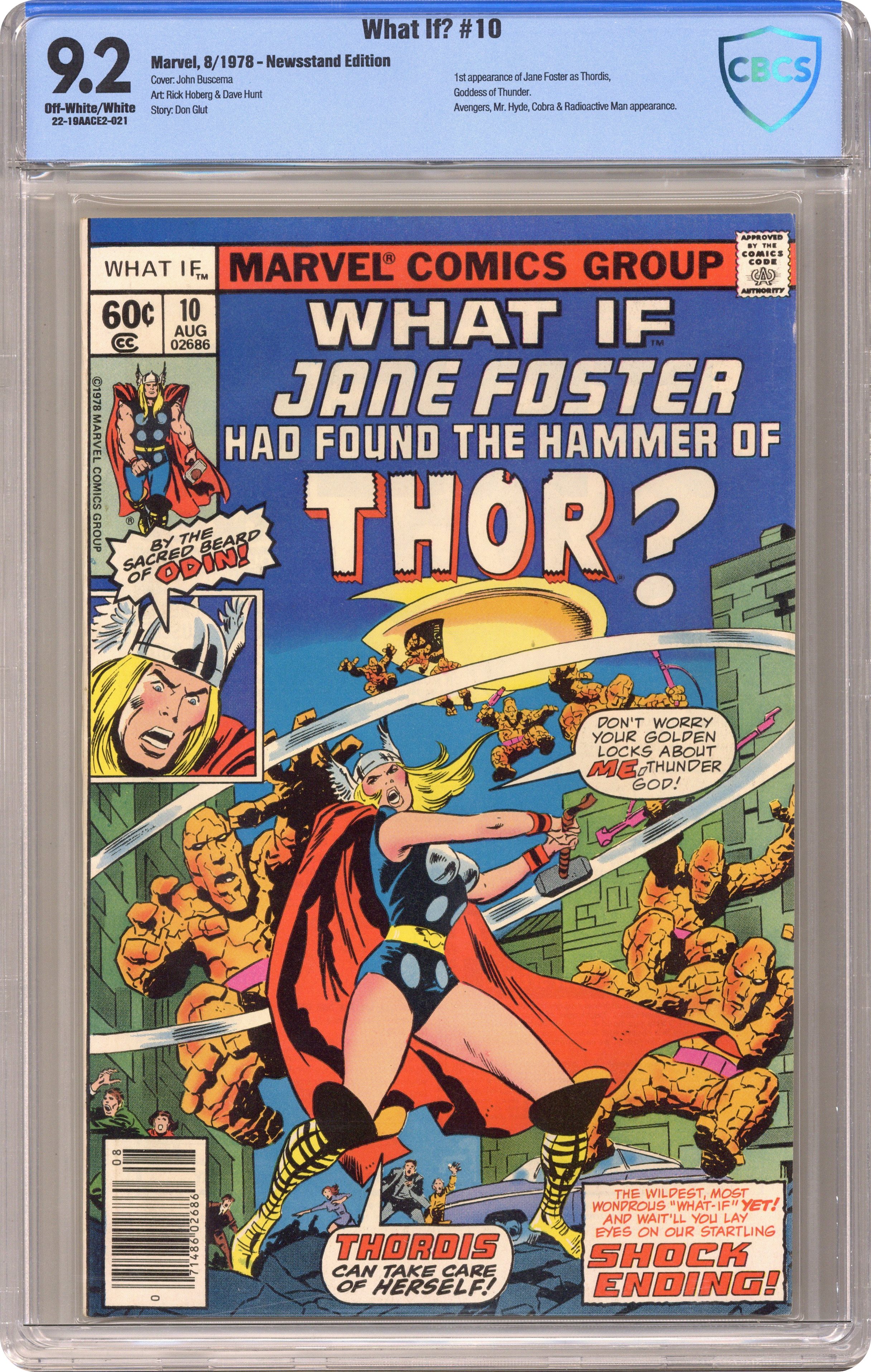 Ended Oct 29 2023 Winning Bid $83 Cover art by John Buscema. What if Jane Foster had Found -- the Hammer of Thor?, script by Don Glut, pencils by Rick Hoberg, inks by Dave Hunt; Jane Foster finds the Hammer instead of Don Blake and becomes "Thordis." Hostess Fruit Pie ad with Spider-Man, pencils by Sal Buscema, inks by Joe Sinnott. 52 pgs. Cover price $0.60. Grade: CBCS 9.2 explanation of grade Condition: Used (collectible)