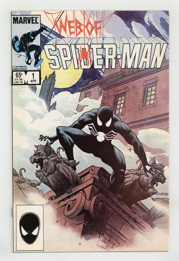 Direct Edition. "Til Death Do Us Part!" Story by Louise Simonson. Art by Greg LaRocque and Jim Mooney. Painted cover by Charles Vess. The alien symbiote (aka black costume) ambushes Peter Parker while he is getting dressed. Now Spider-Man must battle the black costume and the new Vulturions on his way to the Baxter Building! Meanwhile, Aunt May laments Peter's decision to drop out of graduate school. (Note: The Web of Spiderman series essentially replaced the Marvel Team-Up title as Marvel's third regular series featuring Spider-Man.) 32 pages Cover price $0.65. Grade: VF- 7.5 explanation of grade Condition: Used (collectible)
