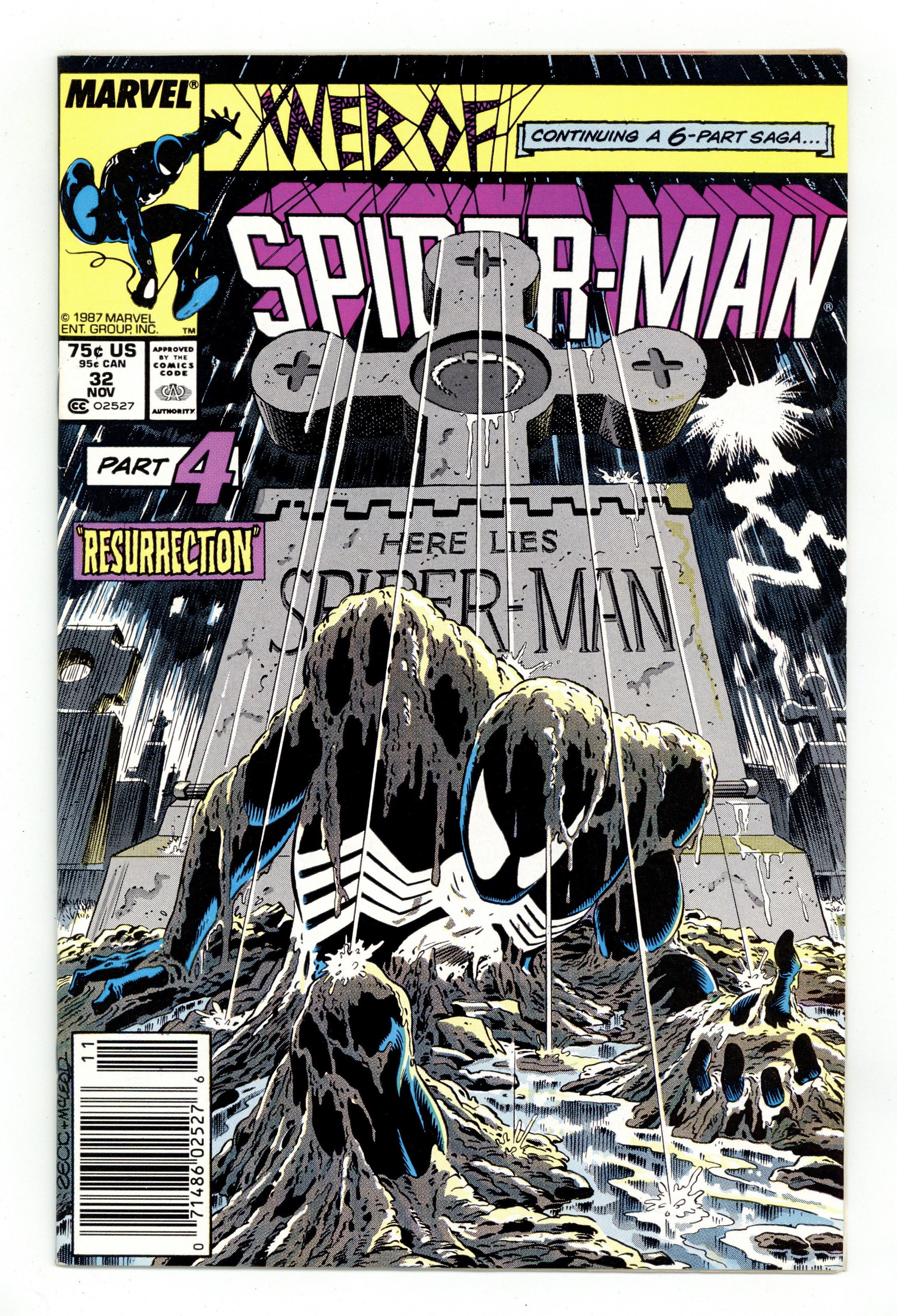Direct Edition. Kraven's Last Hunt - Part 4 of 6 - "Resurrection" Story by J. M. DeMatteis. Art by Mike Zeck and Bob McLeod. Story continues from Spectacular Spiderman 131. Spider-Man finally awakens from his drug-induced coma and busts out of his coffin! Peter quickly returns to his wife, Mary Jane, who has not seen him in two weeks. Meanwhile, Kraven has been committing crimes in New York City, while dressed as Spider-Man. Story continues in Amazing Spiderman 294. Cover price $0.75. Grade: VF- 7.5 explanation of grade Condition: Used (collectible)