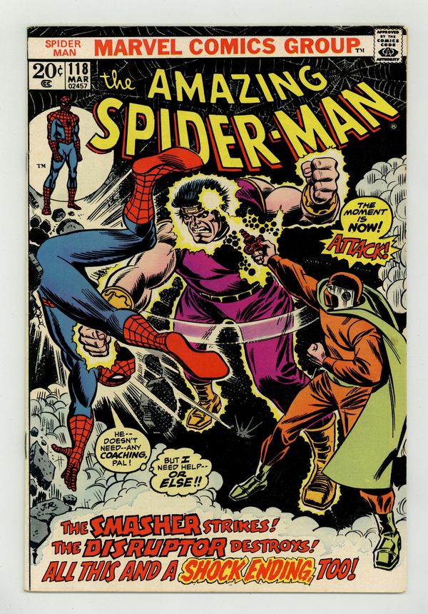 "Countdown to Chaos!" Part 3 of 3. Script by Stan Lee (original) and Gerry Conway (updates). Pencils by John Romita. Inks by Jim Mooney and Tony Mortellaro (backgrounds). Cover by John Romita. The walls are closing in on the Disruptor! As the Spectacular Spider-Man unravels the mystery surrounding the Disruptor, the Smasher, and Richard Raleigh. Will the hotshot mayoral candidate win in a landslide? Or has the election been rigged from the start? Every vote counts! Cameo appearances by J. Jonah Jameson, Joe Robertson, Gwen Stacy, Mary Jane Watson, and Harry Osborn. (Notes: The letters page includes a letter from comics writer Mike Baron (of Nexus and Punisher fame). The letters page also contains a statement of ownership: average print run 519,531; average paid circulation 288,379. This issue was reprinted in Marvel Tales #97.) 36 pages. Cover price $0.20. Grade: VG+ 4.5 explanation of grade Condition: Used (collectible)