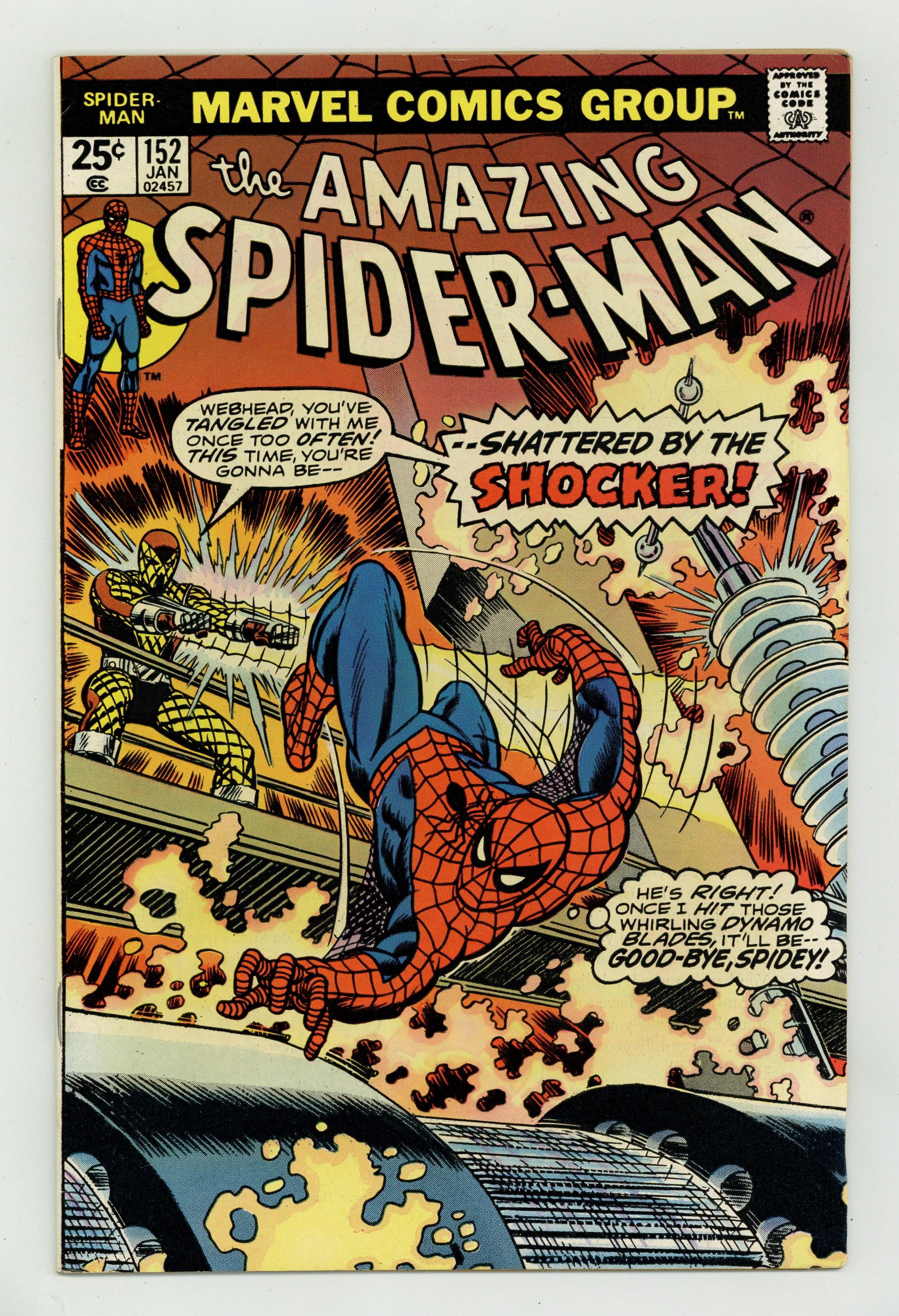 "Shattered by the Shocker!" Part 2 of 2. Script by Len Wein. Pencils by Ross Andru. Inks by Mike Esposito, Frank Giacoia, and Dave Hunt (backgrounds). Cover by Gil Kane and John Romita. After his harrowing escape from the sewer system, the Spectacular Spider-Man itches for a rematch with the Shocker! And just a few days later the web-slinger gets his wish at the Con Ed power plant in Queens! The Shocker wants to black out the city! The wall-crawler wants to keep the lights burning! In grand fashion Spider-Man and the Shocker throw down the gauntlet (in more ways than one) until only the victor remains! Cameo appearances by Mary Jane Watson, Flash Thompson, Harry Osborn, J. Jonah Jameson, and Doctor Octopus. (Notes: The bottom right panel on page 14 is a subtle indication that Dave Hunt inked the backgrounds. The letters page includes Marvel Value Stamp series B #6 Conan the Barbarian by Barry Windsor-Smith. This story was reprinted in Marvel Tales 129.) 36 pages. Cover price $0.25. Grade: FN 6.0 explanation of grade Condition: Used (collectible)