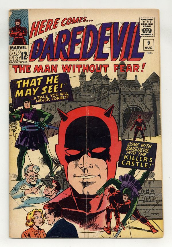 Cover art by Wally Wood. First appearance of Klaus Kruger in That He May See!, script by Stan Lee, pencils by Bob Powell, breakdowns and finished art by Wally Wood; One of Matt's old college pals is a ruler of his own European country and invites the blind lawyer over to see a doctor about restoring his sight; Once in Lichtenbad, DD is needed as Kruger turns out to be a ruthless dictator; The only doctor who could restore Matt's vision dies in the revolt. 32 pgs. Cover price $0.12. Cover price $0.12. Grade: GD/VG 3.0 explanation of grade Condition: Used (collectible)