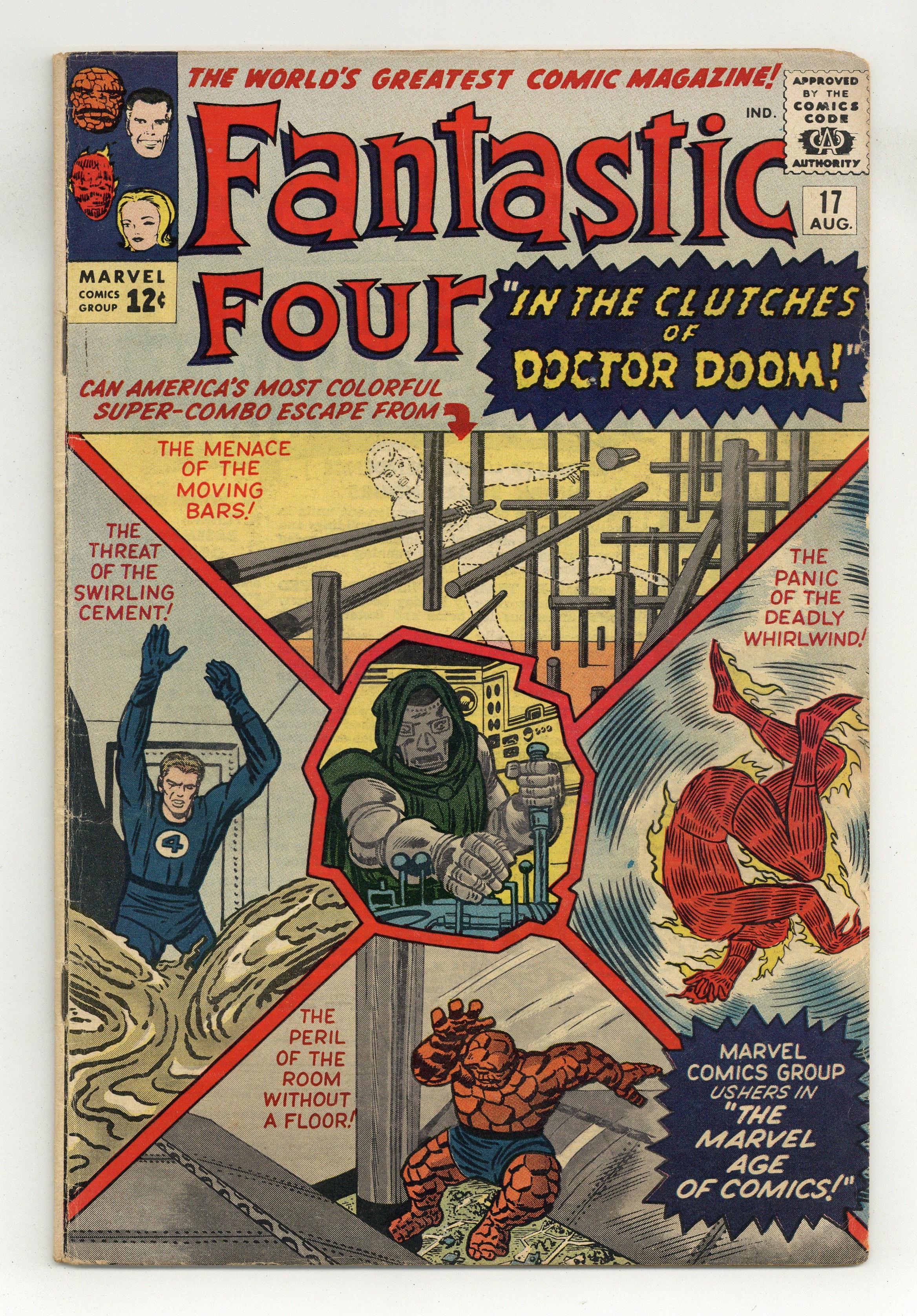 Cover pencils by Jack Kirby, inks by Dick Ayers. Defeated by Doctor Doom!, script by Stan Lee, pencils by Jack Kirby, inks by Dick Ayers; Back from the Micro-world, Doctor Doom attacks the Fantastic Four once more by kidnapping Alicia. Ant-Man guest appearance. 36 pgs. $0.12. Cover price $0.12. Grade: VG- 3.5 explanation of grade Condition: Used (collectible)