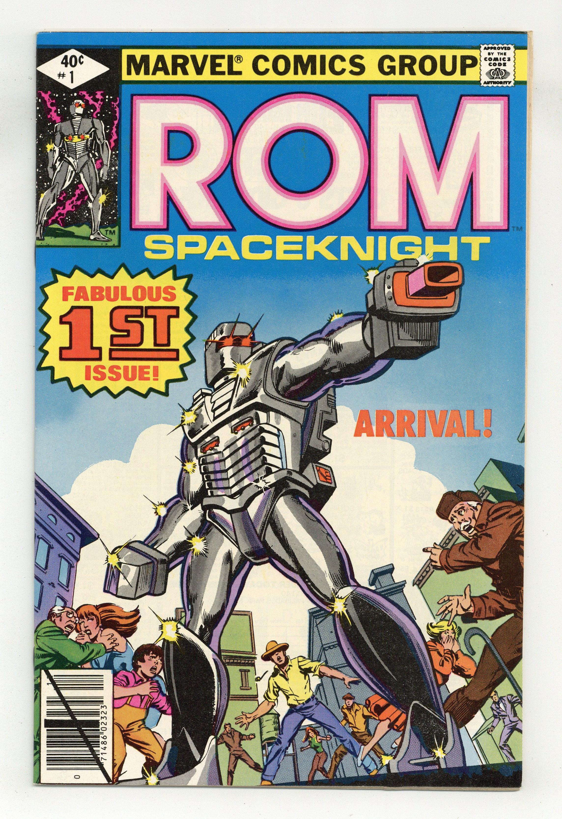 Direct Edition. Story by Bill Mantlo. Art by Sal Buscema. Frank Miller cover. Deep in space two centuries ago a decisive battle between the forces of good and evil was fought. The brave Spaceknights of Galador defeated the evil sorcery and super-science of the Dire Wraiths and scattered them to the furthest reaches of the galaxy. Now in present day their eternal struggle has spilled over to Earth. Rom, greatest of the Spaceknights, has arrived in Clairton, a small West Virginia town. Frightened by the arrival of a 7' alien, the people of Clairton have called in the National Guard. Can Rom convince those he came to save that the true enemy resides in their very ranks? 32 pages. Cover price $0.40. Grade: VF- 7.5 explanation of grade Condition: Used (collectible)