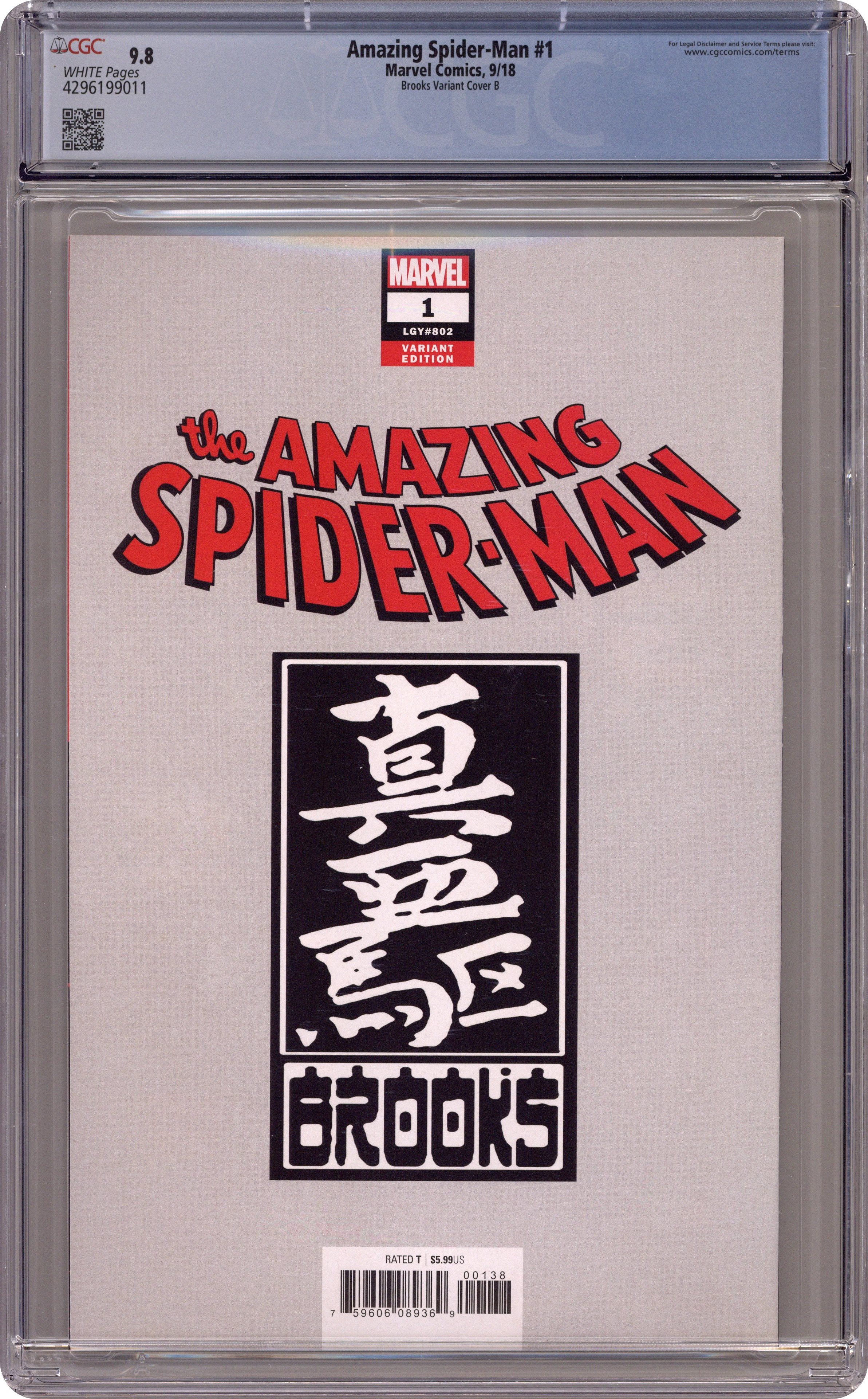 Amazing Spider-Man (2018 6th Series) 1BROOKS.B CGC 9.8 Brooks Artist B Virgin Variant