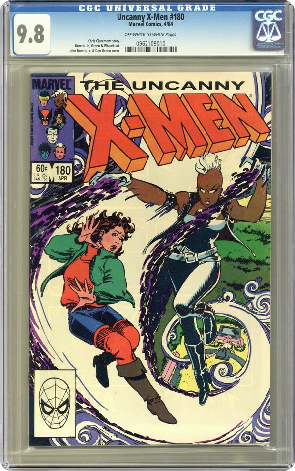 "Whose Life is it, Anyway?!" Story by Chris Claremont. Art by John Romita, Jr., Bob Wiacek, and Dan Green. Kitty Pryde and Doug Ramsey fall into the clutches of one of the X-Men's deadliest adversaries. Plus, the Uncanny X-Men set off on one the greatest adventures of all time. Kitty's story continues in New Mutants #15. The X-Men's story continues in Marvel Super-Heroes Secret Wars (1984) #1. 36 pgs. Cover price $0.60. Grade: CGC 9.8 explanation of grade Condition: Used (collectible)