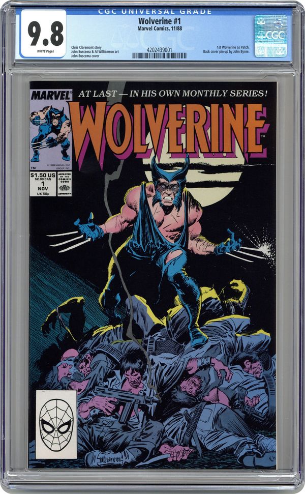 Direct Edition. Part 1 of 3 - "Swordquest!" Written by Chris Claremont. Art by John Buscema and Klaus Janson. Wolvie slices through a pile of pirate slavers, and on his way to Mandripoor discovers a plot by the Black Blade to obtain the legendary Muramasa Sword. John Byrne art on back cover. NOTE: 1st appearance of Wolverine as Patch. Cover price $1.50. Grade: CGC 9.8 explanation of grade Condition: Used (collectible)