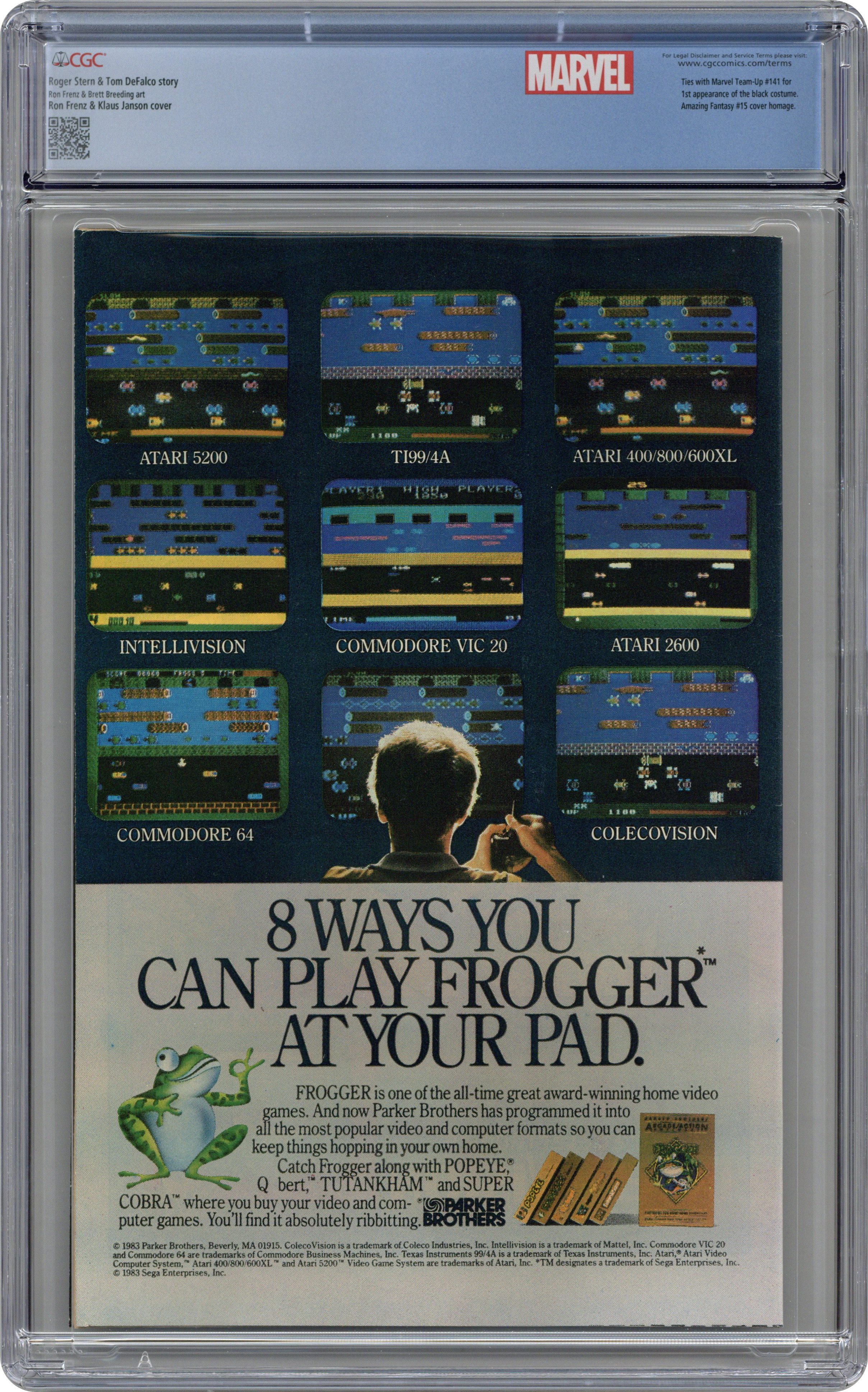 Ended May 5 2024 Winning Bid $315 Newsstand Edition. First appearance of Spider-Man's new black (alien symbiote) costume in "Homecoming!" Plot by Roger Stern. Script by Tom DeFalco. Pencils by Ron Frenz (breakdowns) and Brett Breeding (finishes). Cover by Ron Frenz and Klaus Janson. One of the landmark issues of the Amazing Spider-Man! With a brilliant flash of light in Central Park, the wondrous wall-crawler is back! And he looks a whole lot different! Wow, a new costume! What happened during the Secret Wars on the Beyonder's world? The ominous truth will be revealed to both the readers and the web-slinger in the days and weeks ahead! Cameo appearances by the Black Cat, Dr. Curt Connors, J. Jonah Jameson, Joe Robertson , Aunt May, Captain America, Captain Marvel, Hawkeye, Iron Man, Thor, and the Wasp. (Notes: Marvel Age 12 contained sketches of the new costume two months prior to the publication of this issue. Spidey's new costume was also unveiled in Marvel Team-Up 141 and Spectacular Spider-Man 90. The first issue of the (1984) Marvel Super Heroes Secret Wars Limited Series was published the same month as Amazing Spider-Man 252. The web-slinger discovers his new costume in issue 8 of the limited series. The Frenz-Janson cover is a tribute to the iconic cover of Amazing Fantasy 15. This story was reprinted in Marvel Tales 266. The letters page contains a statement of ownership: average print run 470,527; average paid circulation: 241,762. 36 pgs. Cover price $0.60. Grade: CGC 9.6 explanation of grade Condition: Used (collectible)