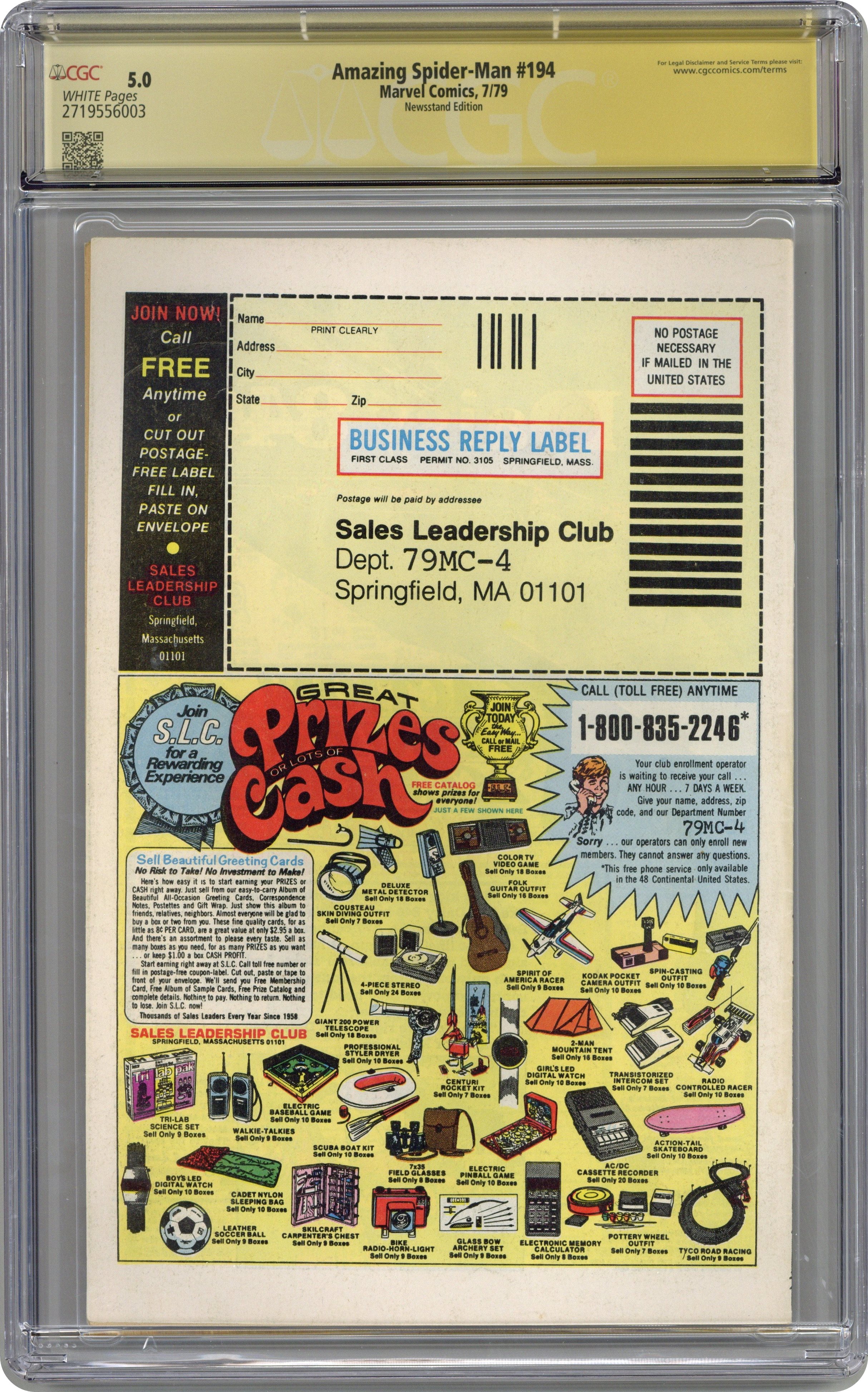 Amazing Spider-Man (1963 1st Series) 194N CGC 5.0 Restored SS Pollard/Shooter/Milgrom Newsstand Variant