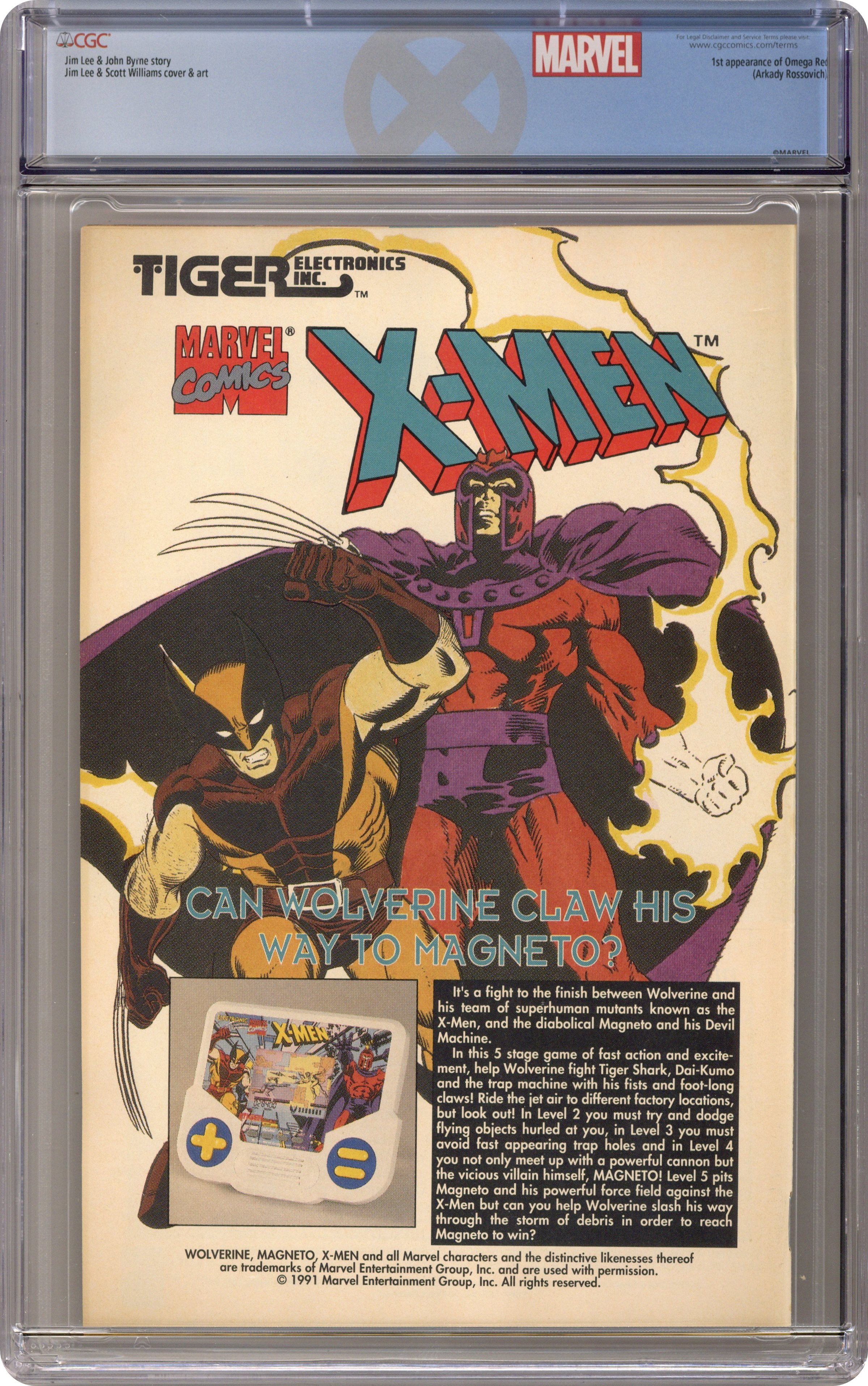 Ended Feb 6 2024 Winning Bid $35 Direct Edition. Cover pencils by Jim Lee, inks by Scott Williams. The Resurrection and the Flesh, script by Jim Lee (Plot) and John Byrne, pencils by Jim Lee, inks by Scott Williams. First appearance of Omega Red! The Hand brings Omega Red (formerly Arkady) back to life; The X-Men play basketball, mutant style; Moira agonizes over her part in the Magneto fiasco and leaves; Gambit and Rogue are on the way to a chaperoned date when Omega Red and the Hand interfere. Cover price $1.00. Grade: CGC 9.2 explanation of grade Condition: Used (collectible)