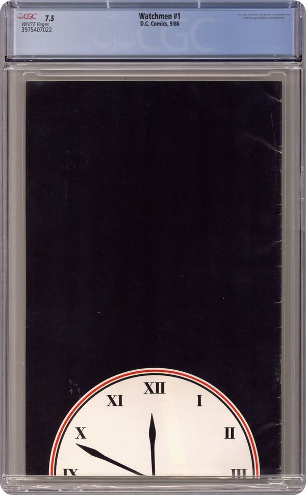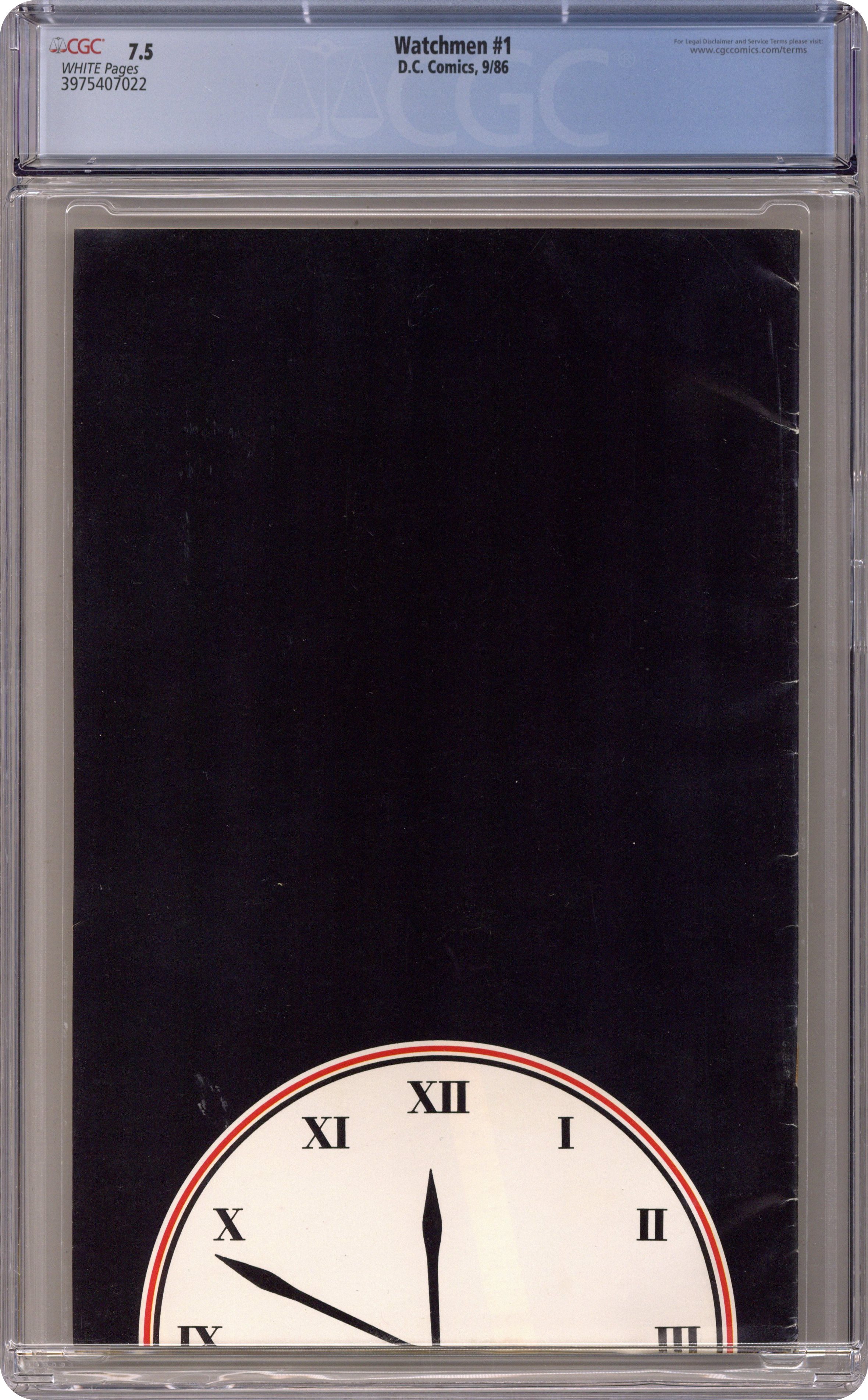 Ended Oct 6 2023 Winning Bid $40 Alan Moore's classic take on the superhero genre. Widely considered to be one of the greatest stories in modern comics history. Art by Dave Gibbons. 1st appearance Rorschach, Ozymandias, Dr. Manhattan, Silk Spectre & Nite Owl. Death of the Comedian. Cover price $1.50. Grade: CGC 7.5 explanation of grade Condition: Used (collectible)