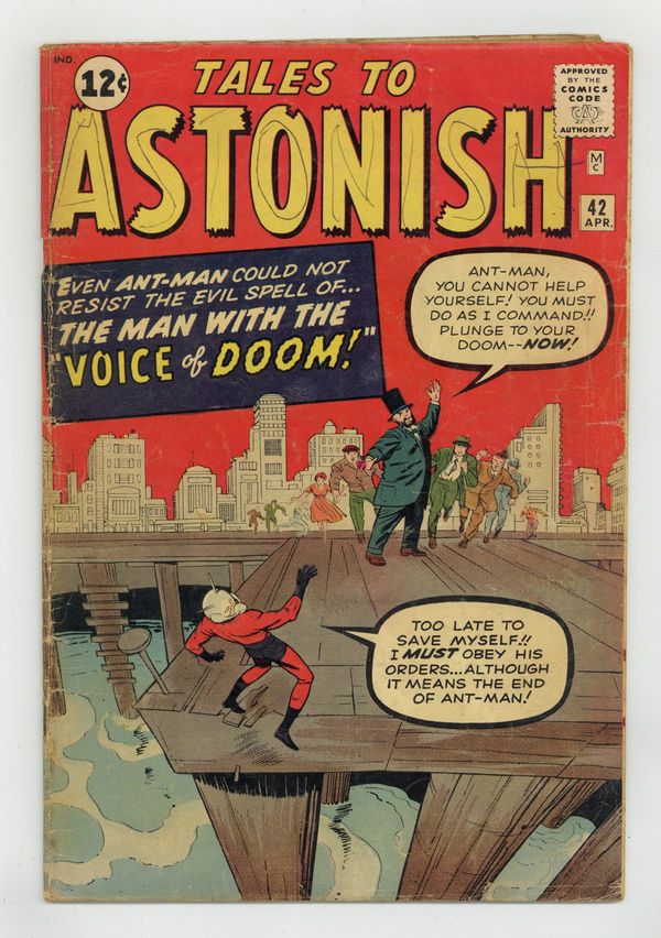 Ended Mar 4 2024 Winning Bid $30 Cover by Jack Kirby and Sol Brodsky. The Voice of Doom!, script by Stan Lee and Larry Lieber, art by Don Heck; A radio spokesman gains a hypnotic voice from radiation, and decides to test it by turning the people against Ant-Man. Secret Mission text story. The Eyes of the Mummy!, script by Stan Lee and Larry Lieber, art by Joe Sinnott; A crook steals a jewel from an ancient dummy, but the dead pharaoh's hypnotic powers make him see only death until he returns it. I Am Not Human!, script by Stan Lee, art by Steve Ditko; A humanoid robot escapes his creator's lab with an artificial face and clothes in order to live among humans as a man. 36 pgs., full color. $0.12. Cover price $0.12. Grade: GD+ 2.5 explanation of grade Condition: Used (collectible)
