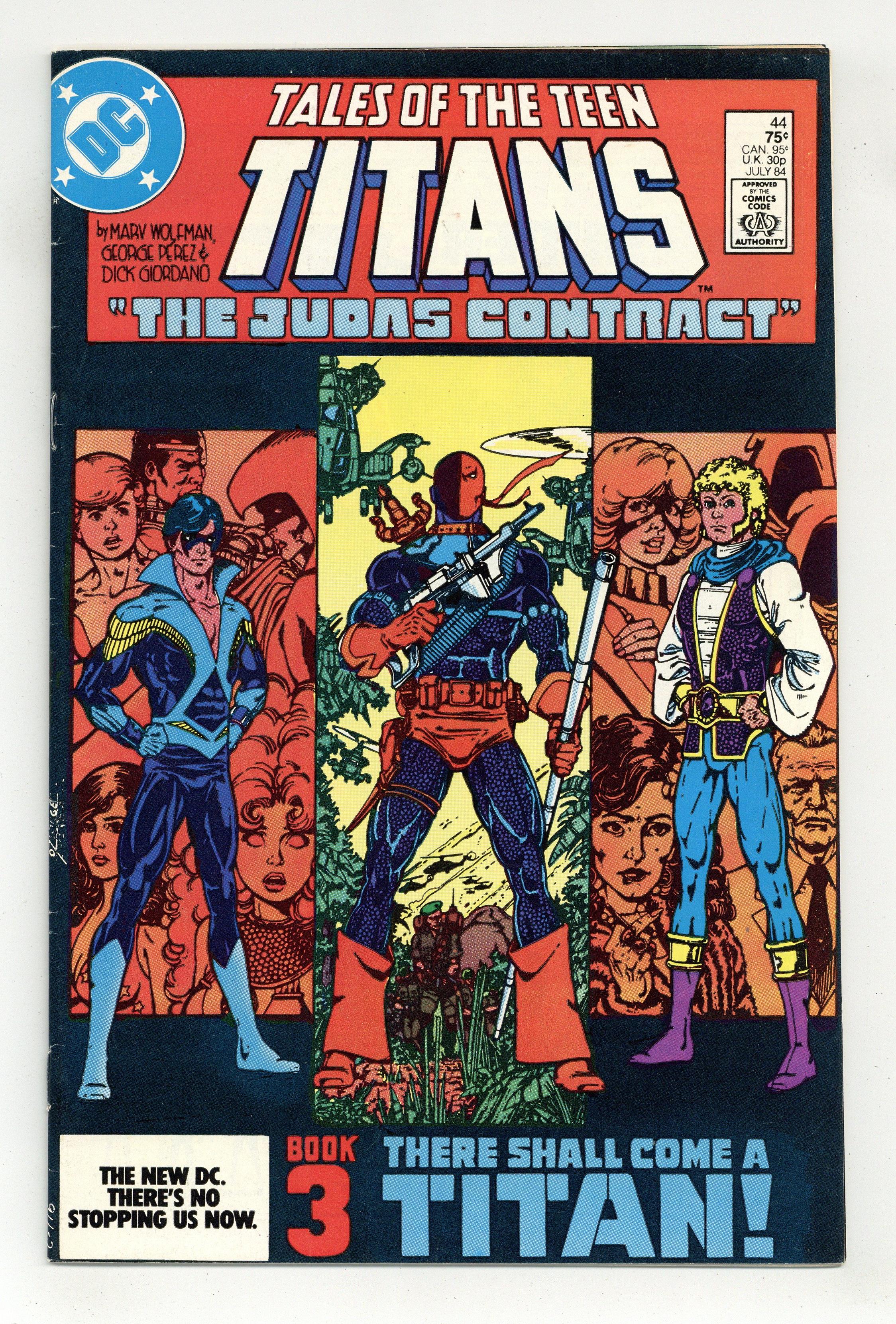 Ended Oct 3 2023 Winning Bid $41 Direct Edition. The Judas Contract: Part 3 of 4: There Shall Come a Titan! - Written by Marv Wolfman & George Perez. Art by George Perez, Dick Giordano and Mike DeCarlo. Cover by George Perez. Adeline Wilson tells Dick Grayson of the origin of Deathstroke, and Dick assumes the name Nightwing for the first time! Starring Nightwing (intro), Jericho (intro), Deathstroke the Terminator, Terra, Adeline Wilson, H.I.V.E., Wintergreen, Grant Wilson (flashback/cameo) and Jackal. Concludes in New Teen Titans (1980) Annual #3. 36 pages, full color. Cover price $0.75. Grade: FN+ 6.5 explanation of grade Condition: Used (collectible)