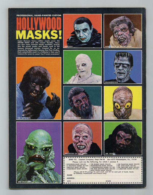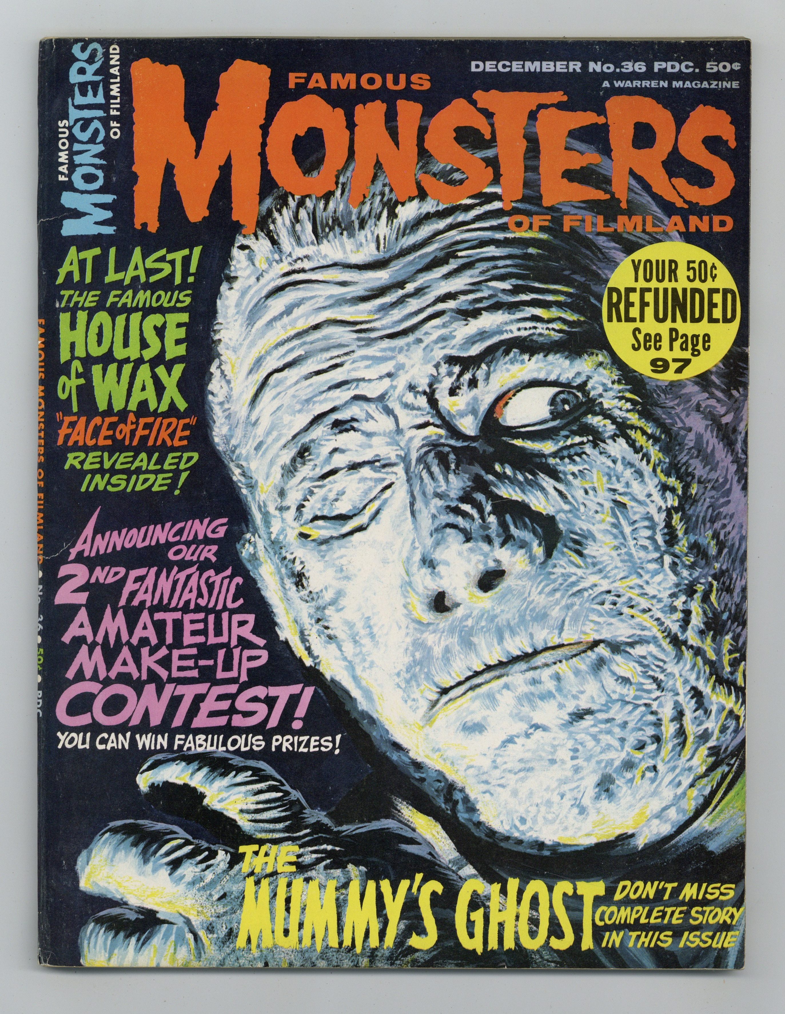 Features in this issue include: a "Monster Makeup Handbook" by Dick Smith; a transcript of Forry's appearance on a television program called The Joe Franklin Show; filmbooks of The Alligator People, St. George and the Seven Curses, The Return of the Fly; and The Mummy's Ghost; and more. The cover painting of Lon Chaney Jr. as The Mummy is by Vic Prezio. Cover price $0.50. Grade: VF- 7.5 explanation of grade Condition: Used (collectible)
