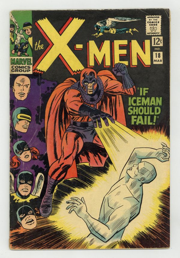 If Iceman Should Fail--!, script by Stan Lee, pencils by Werner Roth [as Jay Gavin], inks by Dick Ayers; With the rest of the X-Men captured in a lead balloon, it is up to an injured Iceman to battle Magneto on his own; Once the X-Men escape Magento's trap, Professor X calls the Stranger who arrives on earth to collect his former captive. 36 pgs. $0.12. Cover price $0.12. Grade: GD/VG 3.0 explanation of grade Condition: Used (collectible)