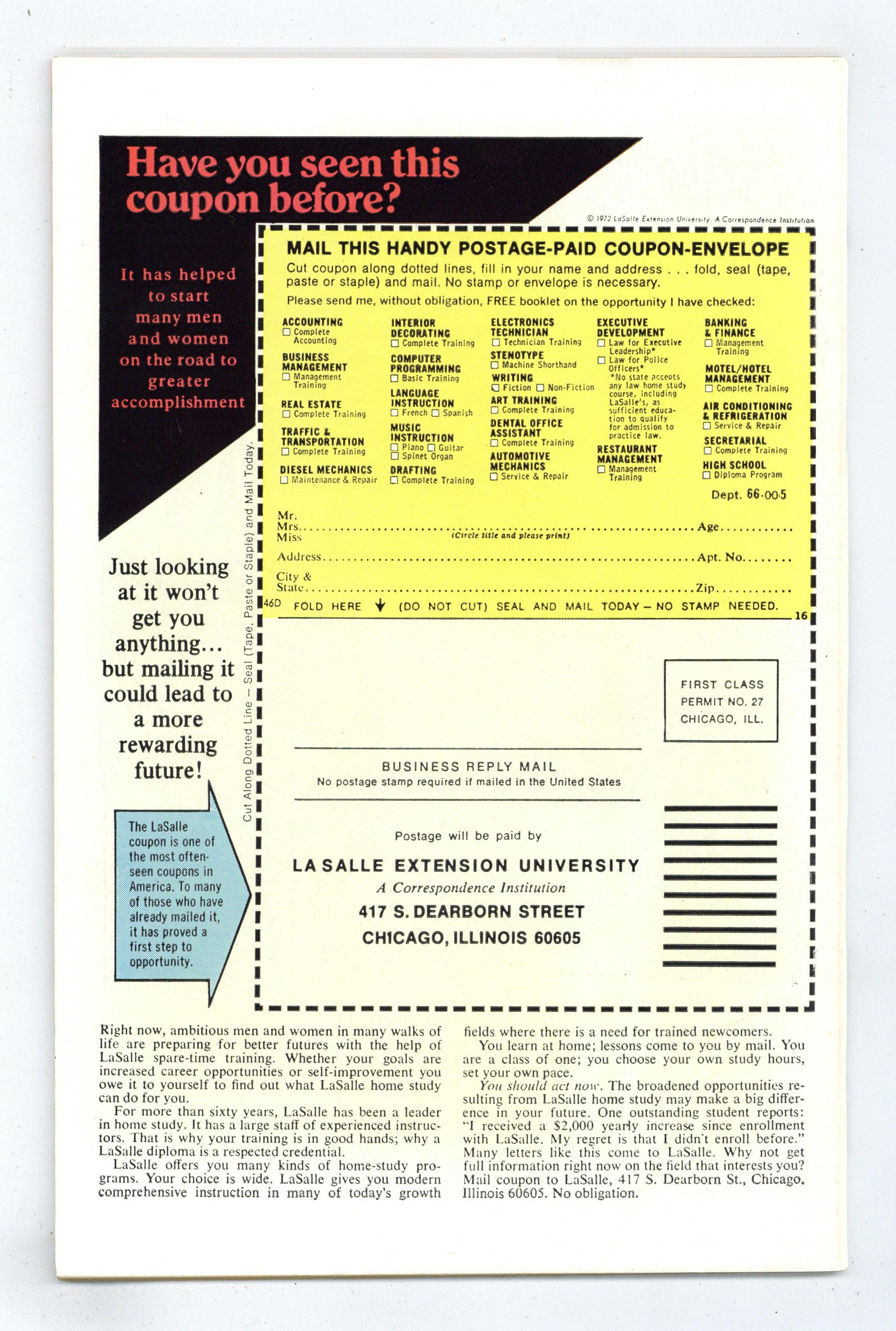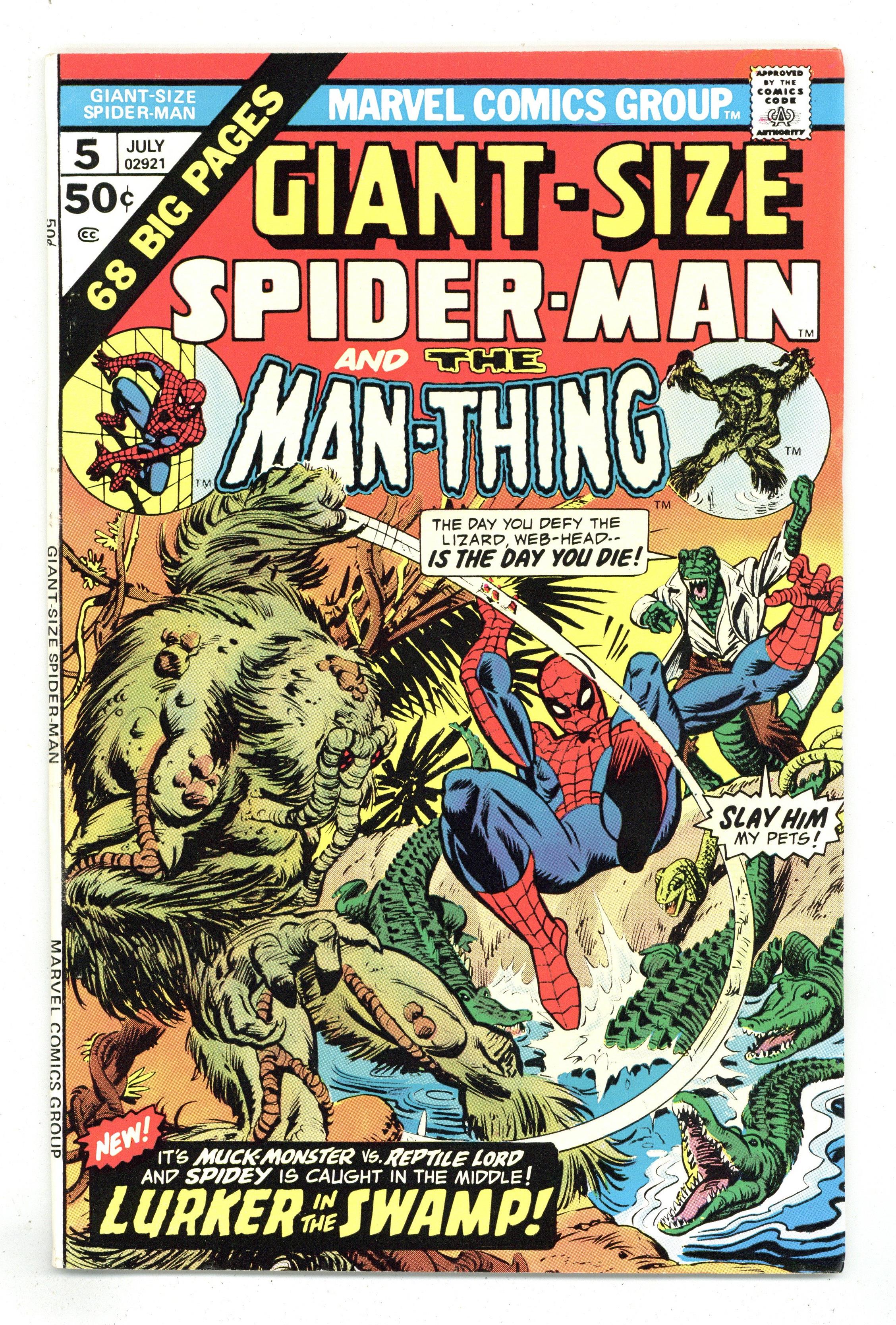 "Beware the Path of the Monster!" Guest-starring the Man-Thing. Script by Gerry Conway. Pencils by Ross Andru. Inks by Mike Esposito and Dave Hunt (backgrounds). Cover by Gil Kane. Peter Parker travels to Florida for a photo story on the mysterious Man-Thing. Before departing on his trip though, Peter calls his long-time friend and current sunshine state resident, Dr. Curt Connors, and asks for his assistance in locating the powerful swamp creature. Later on when the web-slinger arrives in Florida, he finds a creature of the swamp all right; but it's not the Man-Thing ? it's the Lizard! The three-way battle among the Lizard, Man-Thing, and the Amazing Spider-Man is awesome! Also in this issue, Peter consoles the confused clone of Gwen Stacy. (Note: This story takes place between Amazing Spider-Man issues 146 and 147.) Back up story: "Where Flies the Beetle!" Guest-starring the Human Torch. Script by Stan Lee. Art by Steve Ditko. The wall-crawler and the torch join forces to battle the Beetle! Reprinted from Amazing Spiderman 21. (Note: This issue includes a full-page ad for Hostess Twinkies featuring Captain Marvel vs. Nitro.) 64 pages Cover price $0.50. Grade: VF- 7.5 explanation of grade Condition: Used (collectible)