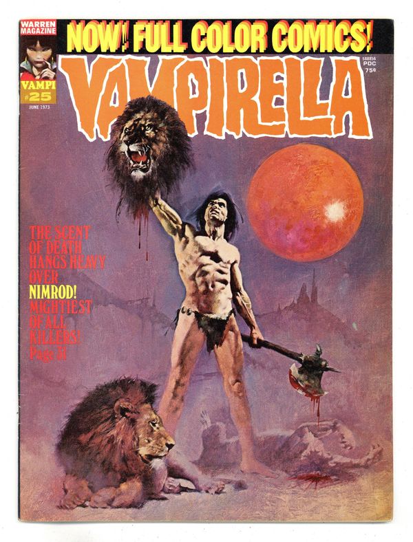 Stories in this issue include: "What Price Love" (starring Vampirella); "The Haunted Child"; "Nimrod" (in full color); "Cold Calculations"; and "Dead Howl at Midnight." Written by Jack L. Bannow, Nicola Cuti, Bill DuBay, W. Eaton, and Dough Moench. Art by Auraleon, Jose Bea, Jose Gonzalez, Esteban Maroto, and Ramon Torrents. Includes guest editorial by legendary comics retailer Phil Seuling, who discusses his arrest for allegedly selling "adult" comics to a minor (which he claims he didn't do). Cover art by Enrich Torres. Cover price $0.75. Grade: VG/FN 5.0 explanation of grade Condition: Used (collectible)