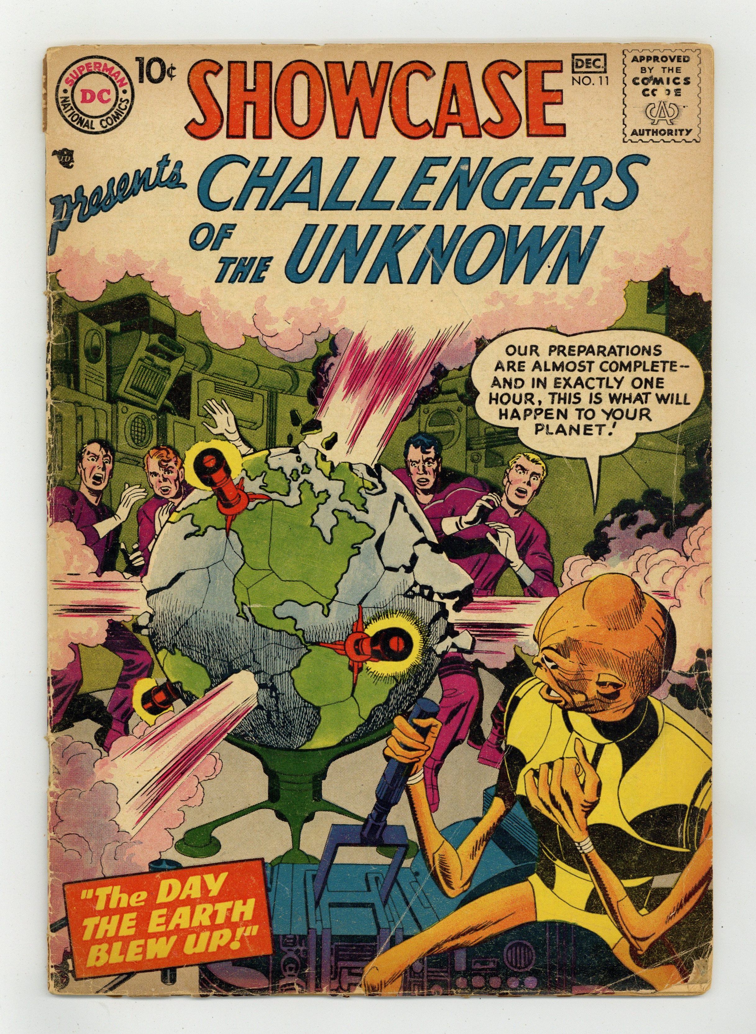 Ended Jan 19 2024 Winning Bid $86 Cover art by Jack Kirby. 3rd apearance of Challengers of the Unknown in The Day the Earth Blew Up, script by Dave Wood, pencils by Jack Kirby, inks by Bruno Premiani; At the Pentagon, Navy officers and scientists are stumped; Two scientists mysteriously disappeared in Antarctica; They call in "men capable of handling the unknown," and Ace takes the call; He, Rocky, and Red fly; They'll pick up Prof along the way; Off New Guinea, Prof is astounded to find a volcano rising from the sea bed; In the Antarctic, the Challengers snow-tractor toward the mystery spot; The tractor bogs in a snowstorm and needs repairs; Ace and Rocky explore and fall through thin ice!; They land on a futuristic bridge; Above, Prof and Red are captured by skinny orange aliens in bubble-suits. Just Imagine story, art by Virgil Finlay. 36 Pages, Full Color. Cover price $0.10. Grade: GD+ 2.5 explanation of grade Condition: Used (collectible)