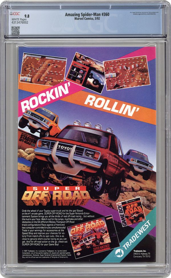 Direct Edition. "Death Toy!" Part 2 of 2. Script by David Michelinie. Pencils by Chris Marrinan. Mark Bagley. Inks by Keith Williams. Cover by Mark Bagley and Randy Emberlin. At the Tech-Toy warehouse, Cardiac and the wall-crawler come to a meeting of the minds about their pursuits of justice! Perhaps it's possible for them to work together after all! The next evening at Stane International, Spider-Man and Cardiac team up to stop the illegal manufacturing of military weapons! Could this be the beginning of a beautiful friendship? Not quite! Meanwhile, a new blood-hued super-villain makes his first savage kill...the first of many! Cameo appearances by Carnage, Mary Jane Watson, Ben Urich, Joy Mercado, and J. Jonah Jameson. Origin of Cardiac. (Notes: Cardiac returns in Amazing Spider-Man 376. The letters page contains a statement of ownership: average print run 470,075; average paid circulation 340,977.) 36 pages. $1.25 cover price. Cover price $1.25. Grade: CGC 9.8 explanation of grade Condition: Used (collectible)