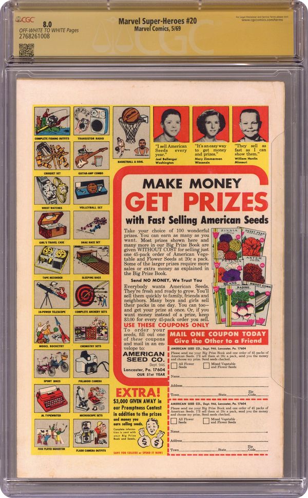 Marvel Super Heroes (1967 1st Series) 20 CGC 8.0 SS Thomas