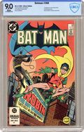 Direct Edition. Cover pencils by Ed Hannigan, inks by Dick Giordano. In this key issue, Jason Todd begins as the new Robin (with a new costume) in a book-length story titled "A Revenge of Rainbows" starring Batman, Robin, Crazy-Quilt, Dick Grayson, Vicki Vale, Joker (flashback), Two-Face (flashback), Scarecrow (flashback), and Penguin (flashback), script by Doug Moench, pencils by Don Newton, inks by Alfredo Alcala; Dick Grayson officially passes along the mantle of Robin to Jason Todd, who accompanies Batman on a "shakedown cruise" around Gotham. 36 Pages, Full Color. Cover price $0.75. Grade: CBCS 9.0 explanation of grade Condition: Used (collectible)