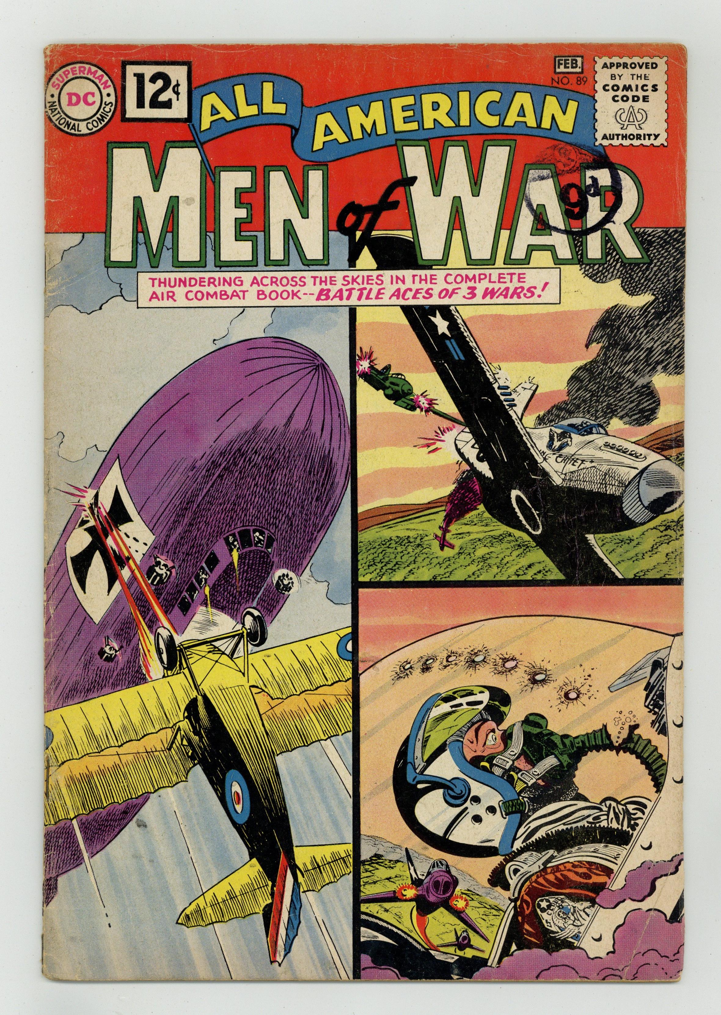 Edited by Robert Kanigher. Cover by Jerry Grandenetti. Stories by Bob Haney, Jerry Grandenetti, Morris Waldinger, Tom Nicolisi, Robert Kanigher, Irv Novick, Hank Chapman, and Russ Heath. Adventure tales of war and the military, including some humor—go into combat with All American Men of War! 36 Pages, Full Color. Cover price $0.12. Grade: GD/VG 3.0 explanation of grade Condition: Used (collectible)