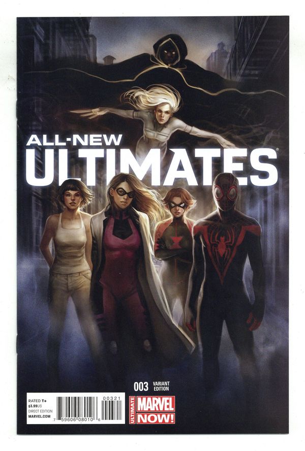 Limited 1 for 25 Retailer Incentive Variant Cover by siya Oum. Written by Michel Fiffe. Art by Amilcar Pinna. Cover by Siya Oum. FROM THE CREATOR OF THE HIT COMIC 'COPRA' Miles Morales the Ultimate Spider-Man! Cloak & Dagger! Bombshell! Black Widow! Kitty Pride! The next generation of ULTIMATES is here, but are they in over their heads? They've fought Galactus but can they survive super-powered street gangs and a psycho trying to clean up the streets? 28 pages, full color. Cover price $3.99. Grade: VF/NM 9.0 explanation of grade Condition: Used (collectible)