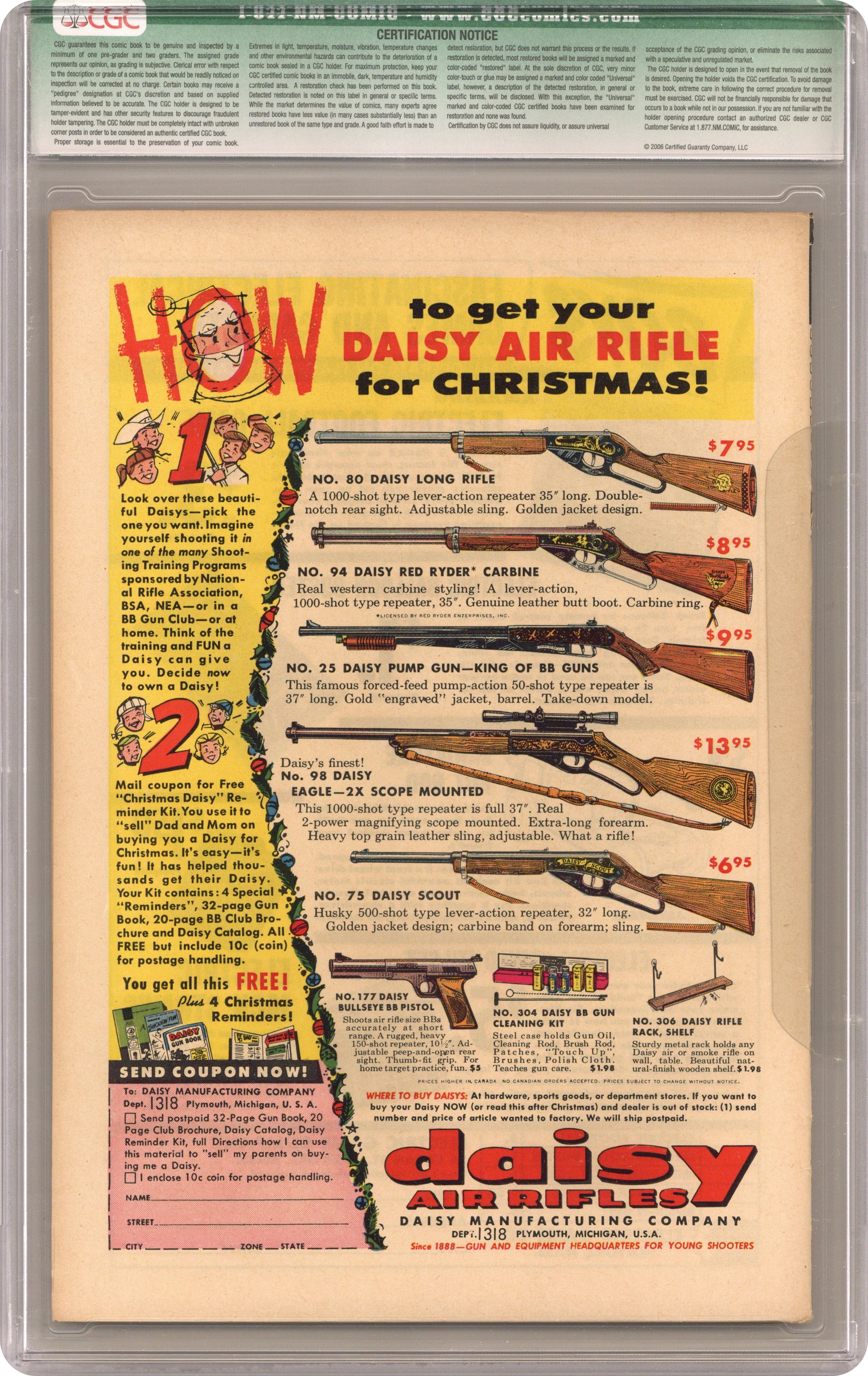 Ended Oct 15 2024 Winning Bid $34 Cover by Warren Kremer. Stories and art by Marty Taras and others. A gigantic duckling toddler with strength to match, well-meaning Huey creates slapstick havoc wherever he goes. Huey wants to know about the Man in the Moon. Baby Huey tries a little too hard to be patriotic. Dipsy Doodle; The Man in the Moon; Star Spangled Duck; Tin Soldier; Big Game Hunter; Herman and Katnip: Head Work. 36 pages, full color. Cover price $0.10. Grade: CGC 8.5 explanation of grade Condition: Used (collectible)