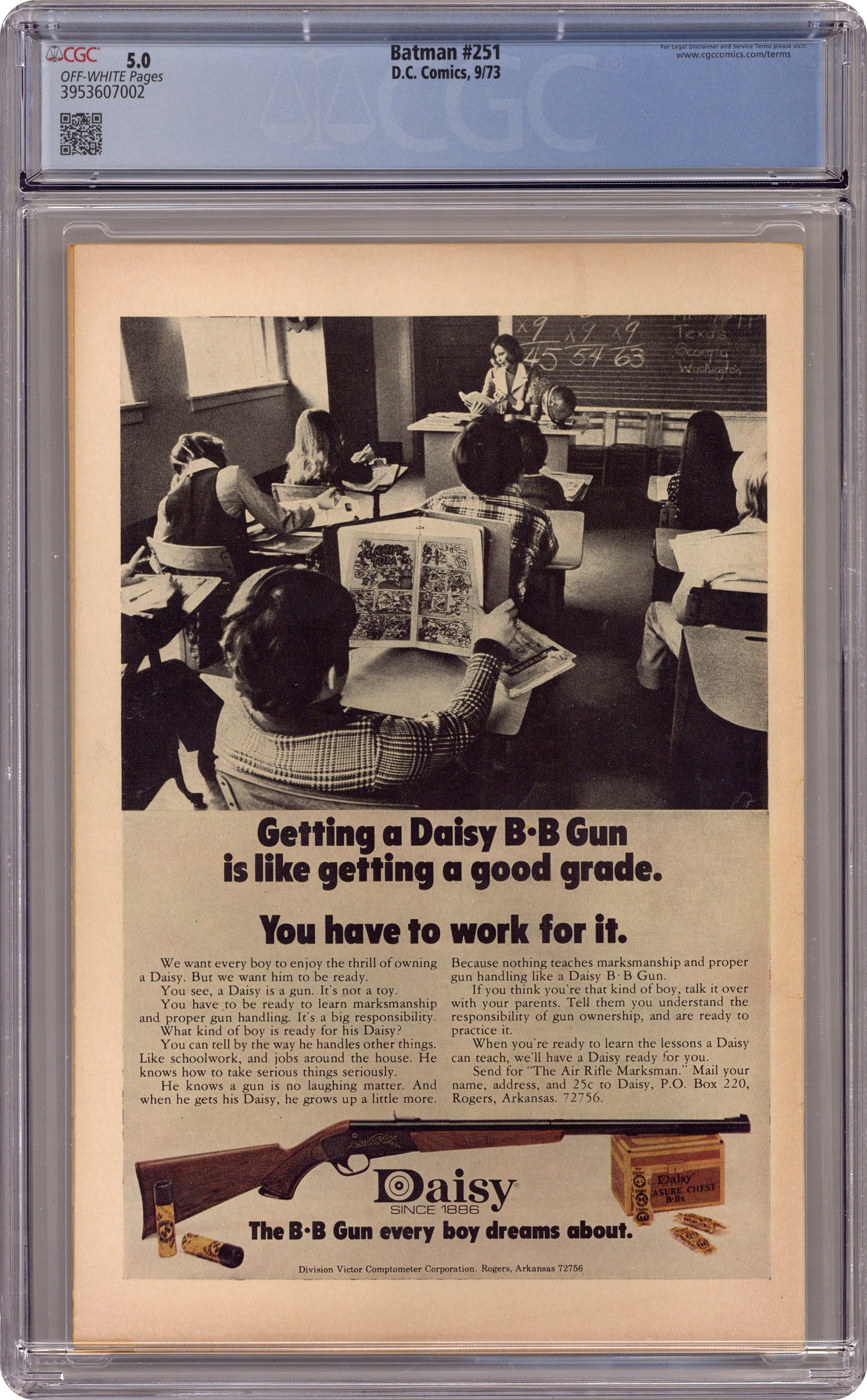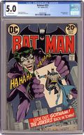 Cover art by Neal Adams. "The Joker's Five-Way Revenge!", script by Denny O'Neil, art by Neal Adams; The Joker has set himself free from the Mental Hospital for the Criminally Insane Batman had him incarcerated in, and he is out for blood; Before he was sent away, knowing that one member of his previous gang had ratted him out to the police, he had vowed to murder all five of them; And only the Batman is capable of stopping him; Despite Batman's best efforts, the Joker is able to finish off nearly all of his hit list; Batman is only alerted after the first murder, when a grinning corpse is found in the mud just outside of Gotham City, and he goes to each of the former members of the Joker's gang individually to try to protect them. Plop! comic book ad. Champion Sports comic book ad. 36 Pages, Full Color. Cover price $0.20. Grade: CGC 5.0 explanation of grade Condition: Used (collectible)