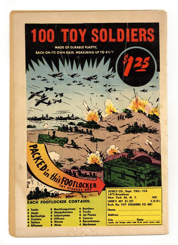 Ended Jan 17 2024 Winning Bid $73 Cover pencils by Curt Swan, inks by Stan Kaye. Batman guest appearance in Superman cover story, "The Super-Key to Fort Superman," script by Jerry Coleman, pencils by Wayne Boring, inks by Stan Kaye; Someone has broken into Superman's Fortress of Solitude, so Superman searches the place for clues. 2/3-page Hollywood Ha-Lights story by Harry Lampert. One-page Tricksy the World's Greatest Stunt Man story by Henry Boltinoff. "The Great Jungle Hoax" starring Congo Bill, art by Howard Sherman. Sgt. Bilko's Pvt. Doberman ad. "The Strangest Crew in the Universe" starring Tommy Tomorrow, script by Otto Binder, art by Jim Mooney. 36 Pages, Full Color. $.10 Cover price $0.10. Grade: GD 2.0 explanation of grade Condition: Used (collectible)