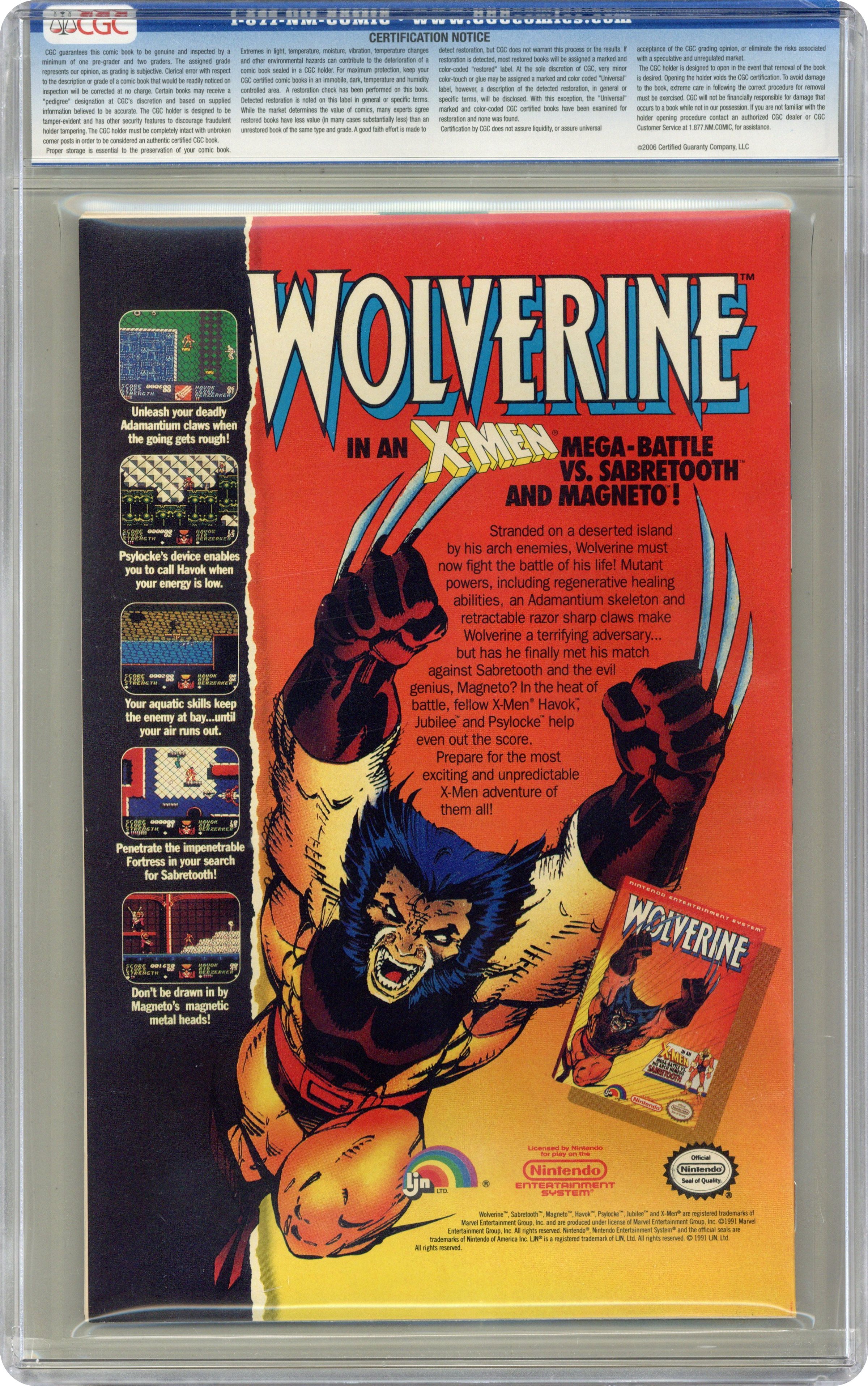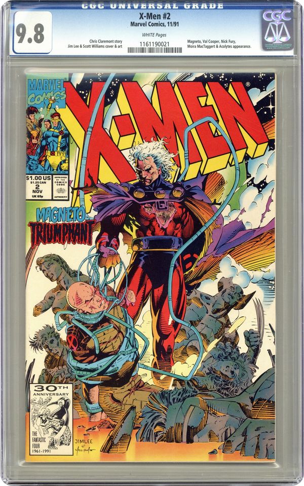 Direct Edition. Cover pencils by Jim Lee, inks by Scott Williams. Firestorm, script by Jim Lee (Co-Plotter) and Chris Claremont, pencils by Jim Lee inks by Scott Williams; The Prof and X-Men Blue are captured and taken to Asteroid M; Magneto discovers that Moira altered his genetic structure when he was a child in her care; The rest of the X-Folk are told they must rescue their team-mates before the Magneto Protocols are implemented. Cover price $1.00. Grade: CGC 9.8 explanation of grade Condition: Used (collectible)