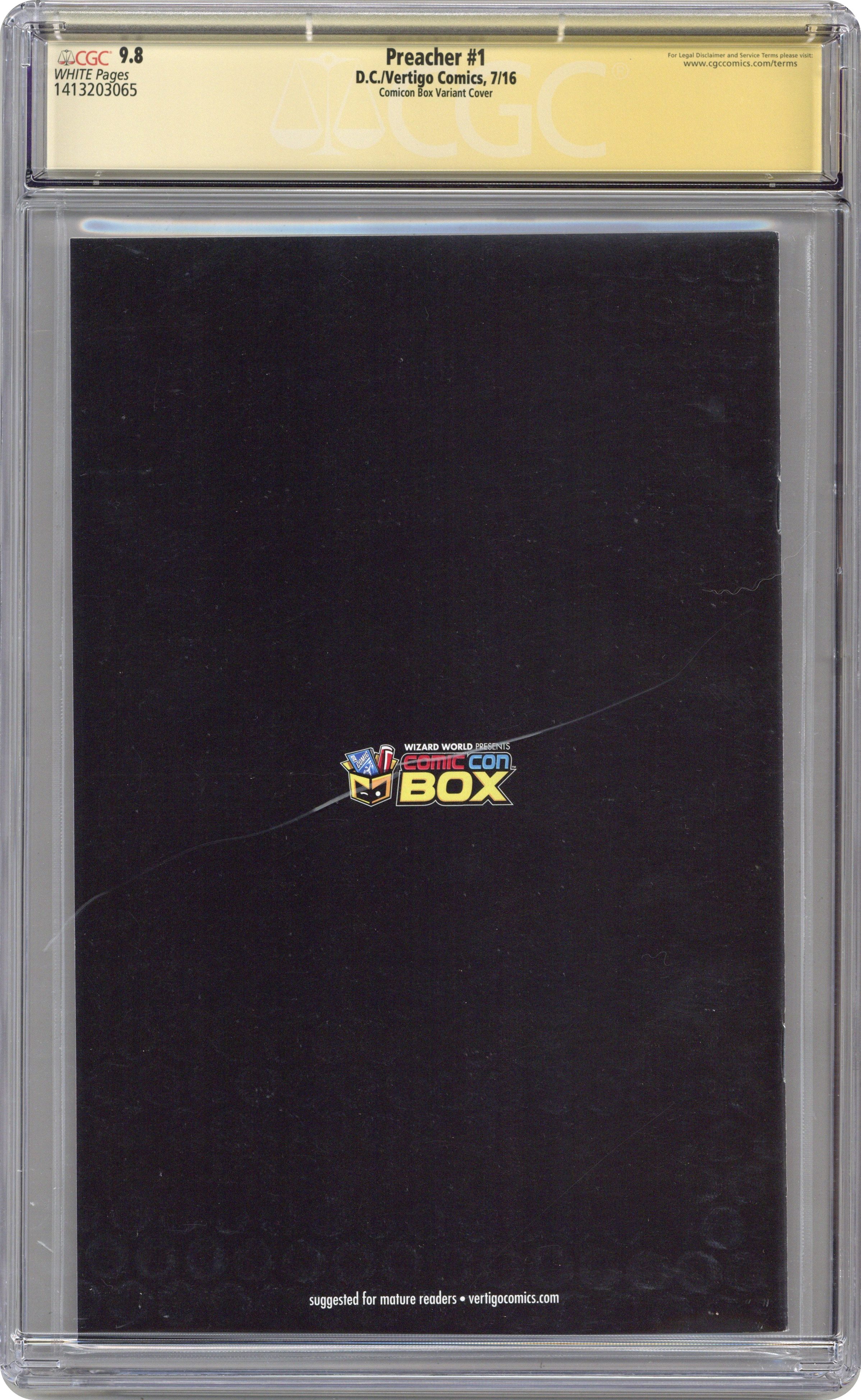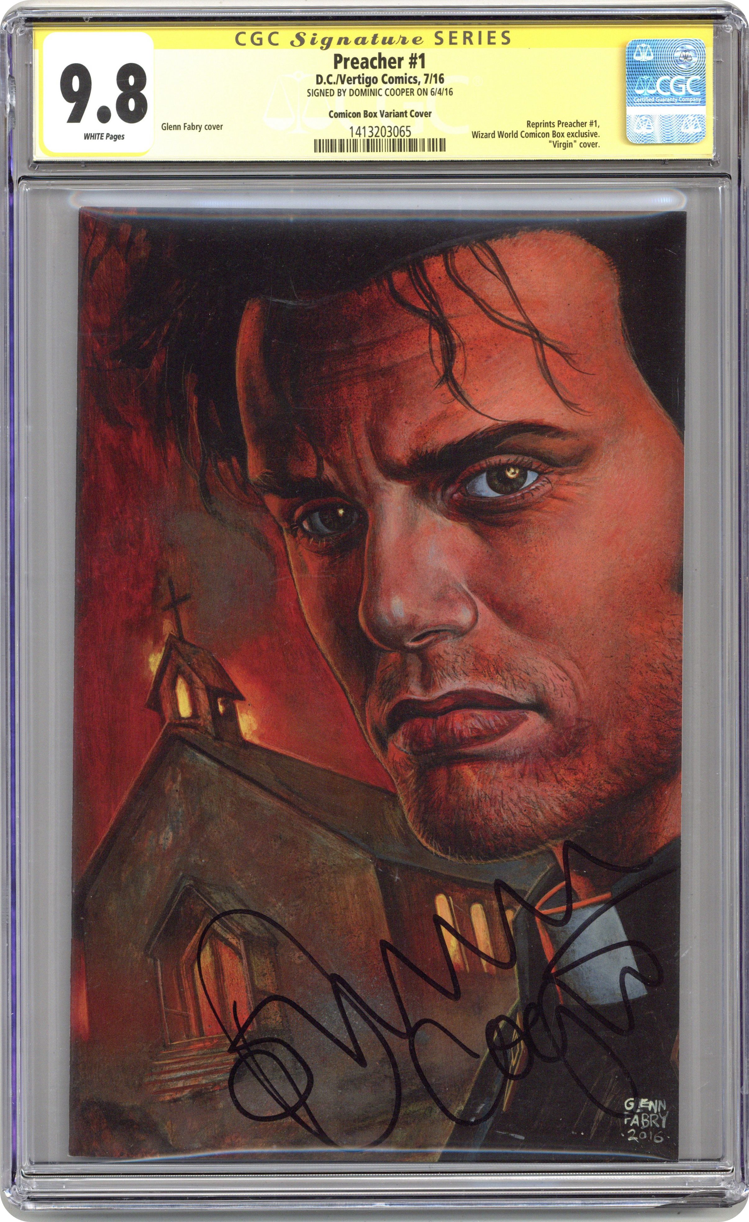 Published Jul 2016 by DC/Vertigo.Preacher (1995) 1C CGC 9.8 SS Cooper Fabry WW Con Box Virgin Variant
